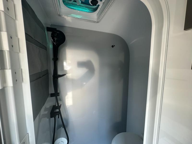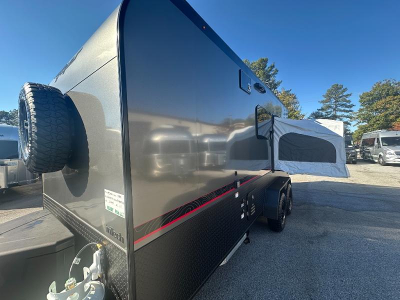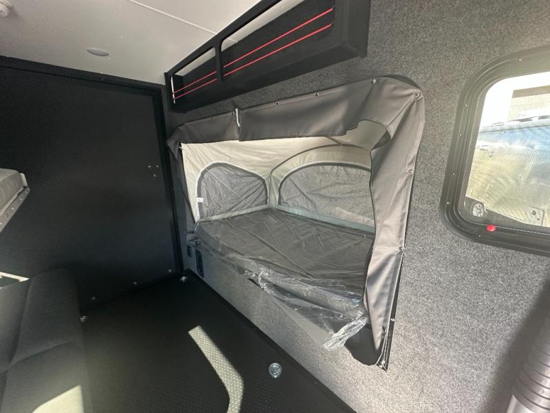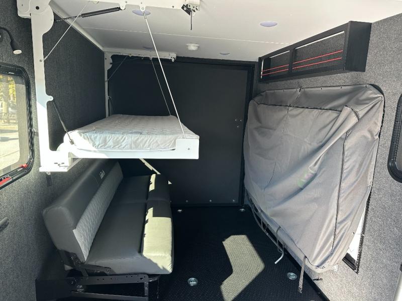 You asked for it and inTech RV delivered with this toy hauler expandable! You will enjoy some of the same features as the Discover model, but will also appreciate a wet bath in the Forge. There is a porcelain toilet, aluminum walls with a sealing exterior door so you don't need a shower curtain, storage space, and even a bath roof vent with an onboard switch! The kitchen includes everything you need to cook meals each day, including a two burner cooktop, a large farmhouse sink, and a spacious 8 cu.ft. 12V refrigerator! The 80" x 160" garage floor space features durable black coin flooring and is large enough to bring in most side-by-sides, plus there are tie-downs to keep your toys secure. For sleeping space, you'll find a tip-out bed and a standard sleeper sofa, and if you have more campers tagging along, you can add the optional drop-down bunk, or even bring your own air mattress! A few more stand-out features you'll love on the Forge are the on-demand LP water heater, the aluminum walk-on roof, tinted windows, and Airline Track sidewall tie-down area! The dry weight for this model ranges from 3,845 lbs. - 4,300 lbs., and the carrying capacity ranges from 2,700 lbs. - 3,155 lbs.