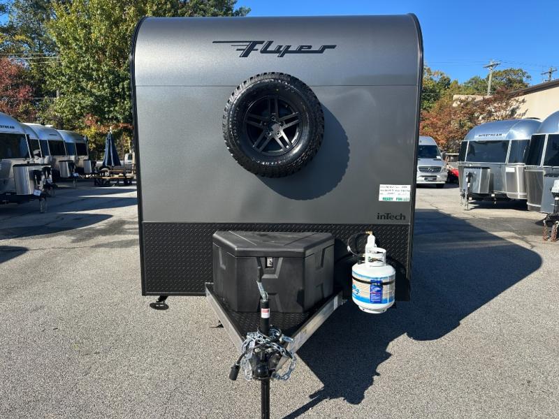 The inTech RV Flyer travel trailers and toy hauler expandables are ready for adventure whenever you are! With the all-aluminum, all-tube cage frame, the Flyer has been built with lightweight and long-lasting materials so that you can enjoy your unit for many, many years. The Flyer has a rugged design so that you can confidently explore new territory and go where traditional RVs cannot. The Flyer has a 2" rear receiver rated for 175 pounds which allows you to bring along your bikes, and the Bluetooth stereo has two speakers you can always have your best music playing. The optional roof rack will allow you to bring along kayaks, and there are more available options depending on the model you choose.