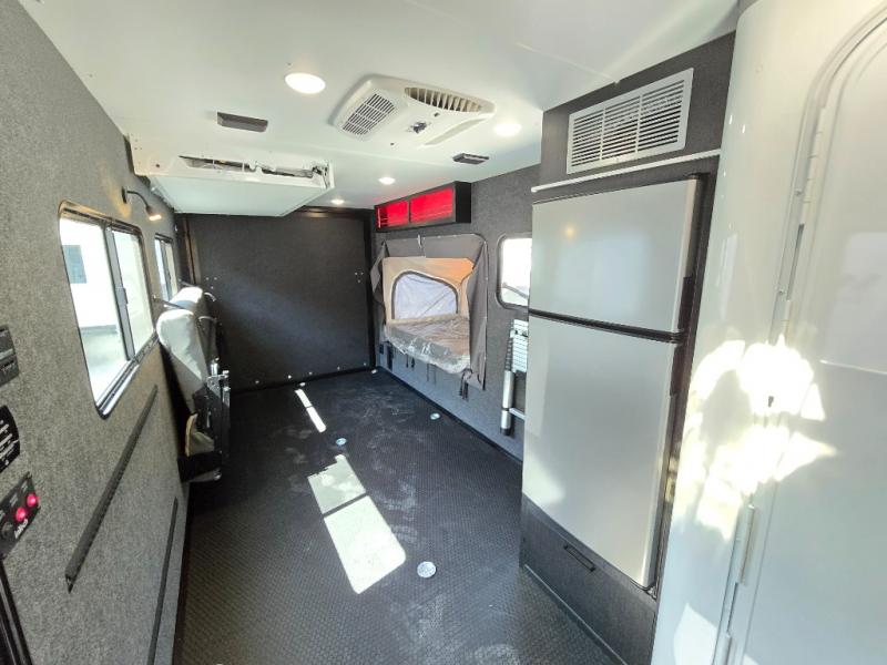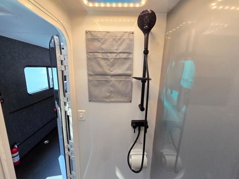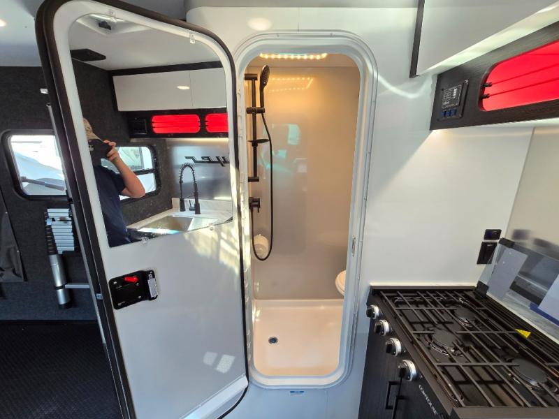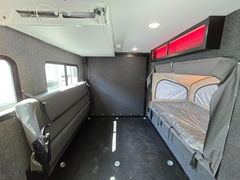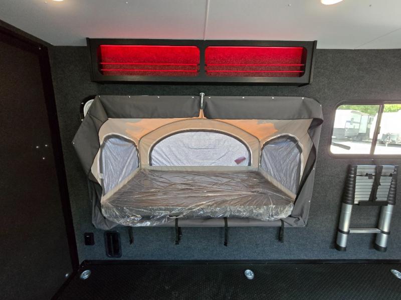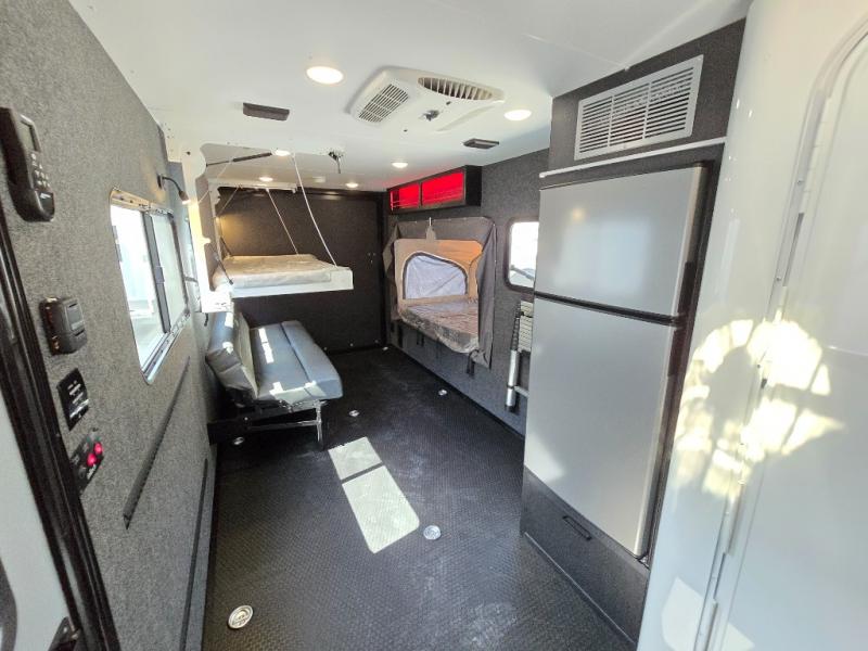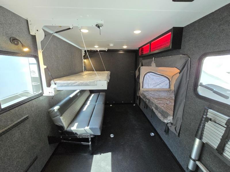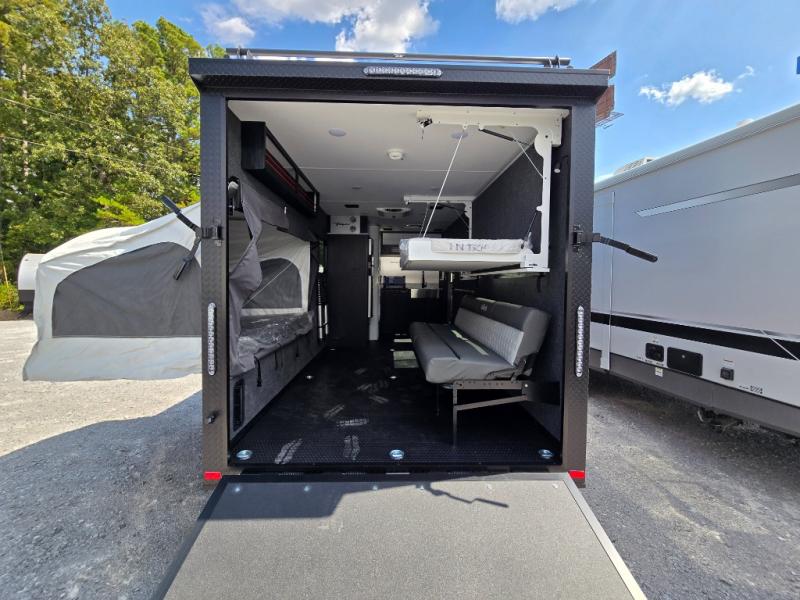 You asked for it and inTech RV delivered with this toy hauler expandable! You will enjoy some of the same features as the Discover model, but will also appreciate a wet bath in the Forge. There is a porcelain toilet, aluminum walls with a sealing exterior door so you don't need a shower curtain, storage space, and even a bath roof vent with an onboard switch! The kitchen includes everything you need to cook meals each day, including a two burner cooktop, a large farmhouse sink, and a spacious 8 cu.ft. 12V refrigerator! The 80" x 160" garage floor space features durable black coin flooring and is large enough to bring in most side-by-sides, plus there are tie-downs to keep your toys secure. For sleeping space, you'll find a tip-out bed and a standard sleeper sofa, and if you have more campers tagging along, you can add the optional drop-down bunk, or even bring your own air mattress! A few more stand-out features you'll love on the Forge are the on-demand LP water heater, the aluminum walk-on roof, tinted windows, and Airline Track sidewall tie-down area! The dry weight for this model ranges from 3,845 lbs. - 4,300 lbs., and the carrying capacity ranges from 2,700 lbs. - 3,155 lbs.