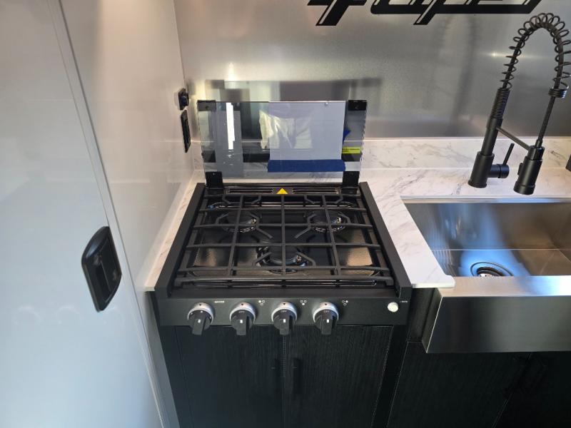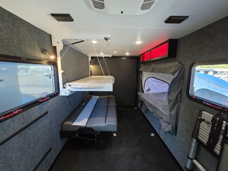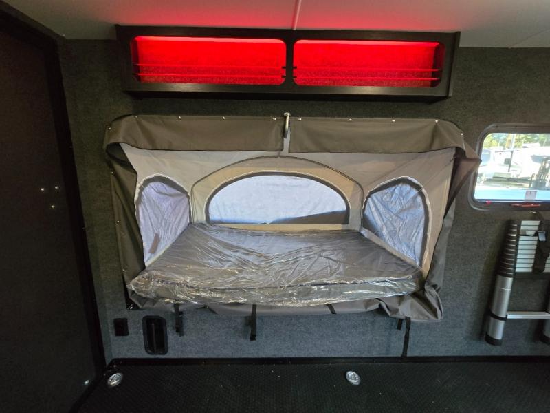 You asked for it and inTech RV delivered with this toy hauler expandable! You will enjoy some of the same features as the Discover model, but will also appreciate a wet bath in the Forge. There is a porcelain toilet, aluminum walls with a sealing exterior door so you don't need a shower curtain, storage space, and even a bath roof vent with an onboard switch! The kitchen includes everything you need to cook meals each day, including a two burner cooktop, a large farmhouse sink, and a spacious 8 cu.ft. 12V refrigerator! The 80" x 160" garage floor space features durable black coin flooring and is large enough to bring in most side-by-sides, plus there are tie-downs to keep your toys secure. For sleeping space, you'll find a tip-out bed and a standard sleeper sofa, and if you have more campers tagging along, you can add the optional drop-down bunk, or even bring your own air mattress! A few more stand-out features you'll love on the Forge are the on-demand LP water heater, the aluminum walk-on roof, tinted windows, and Airline Track sidewall tie-down area! The dry weight for this model ranges from 3,845 lbs. - 4,300 lbs., and the carrying capacity ranges from 2,700 lbs. - 3,155 lbs.