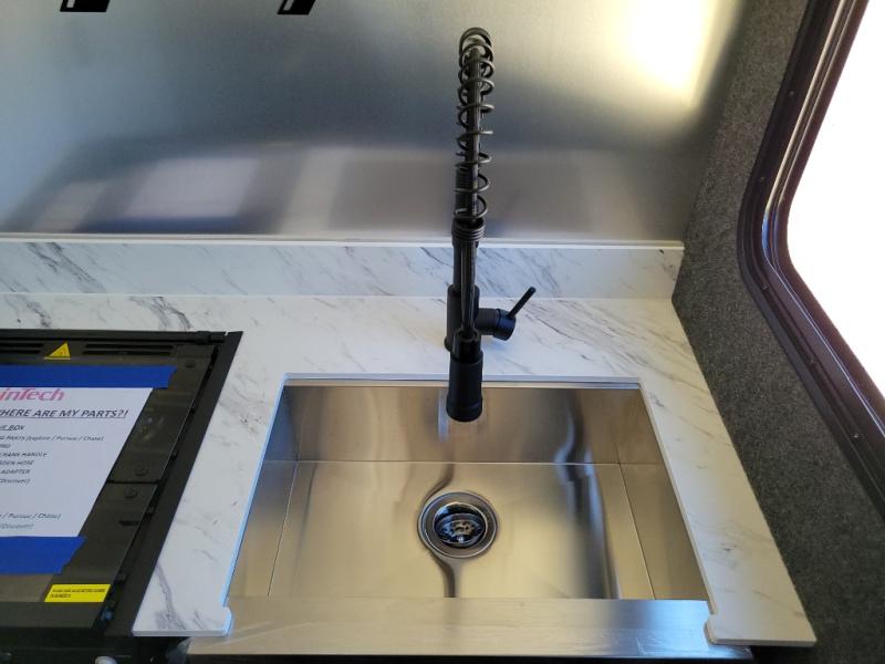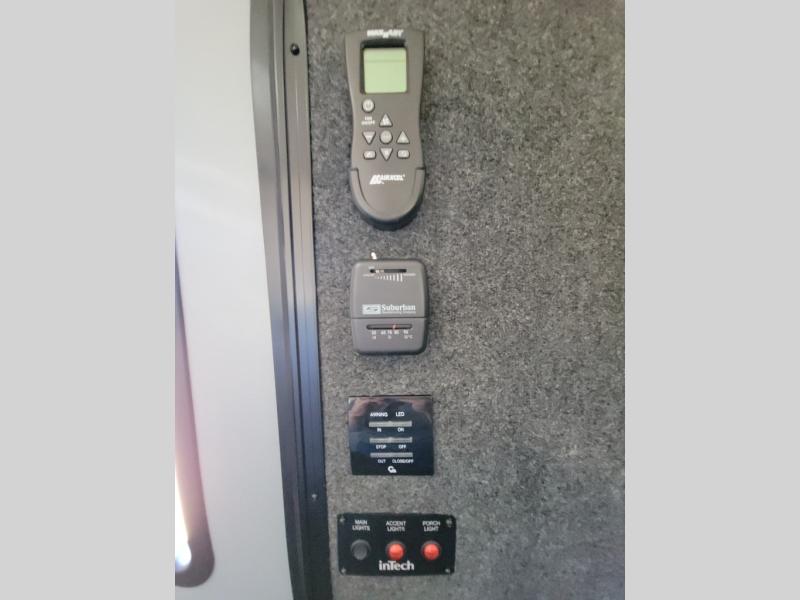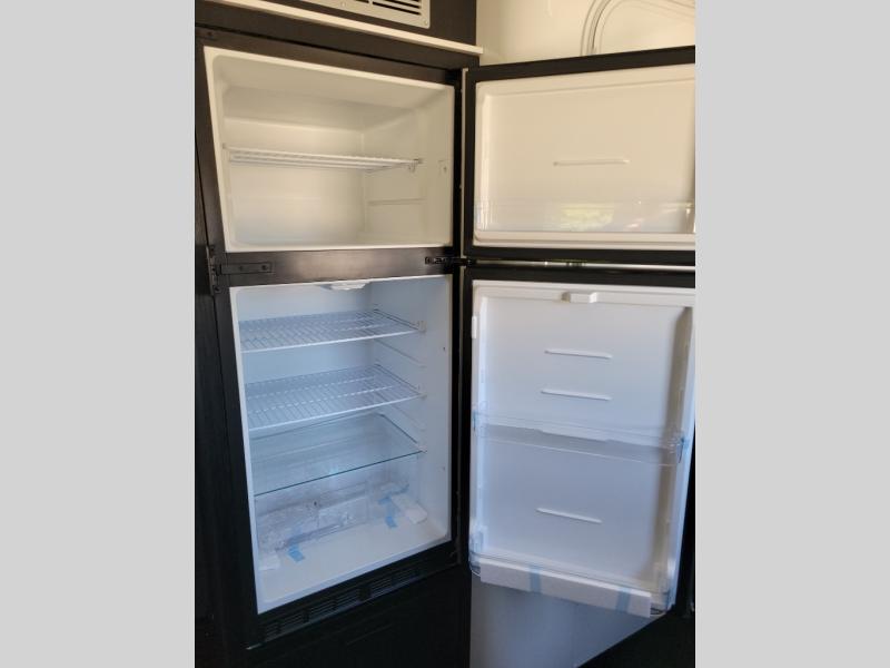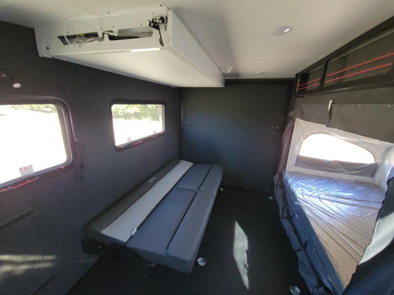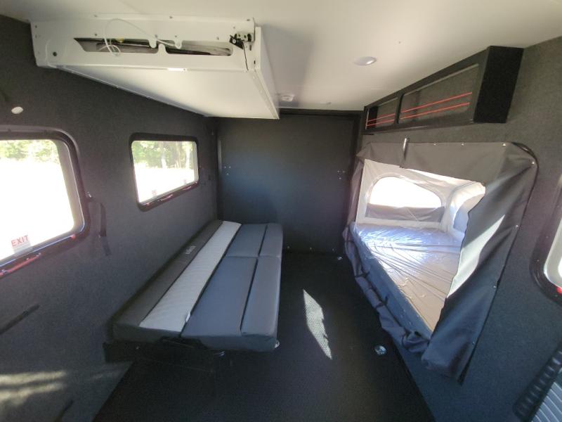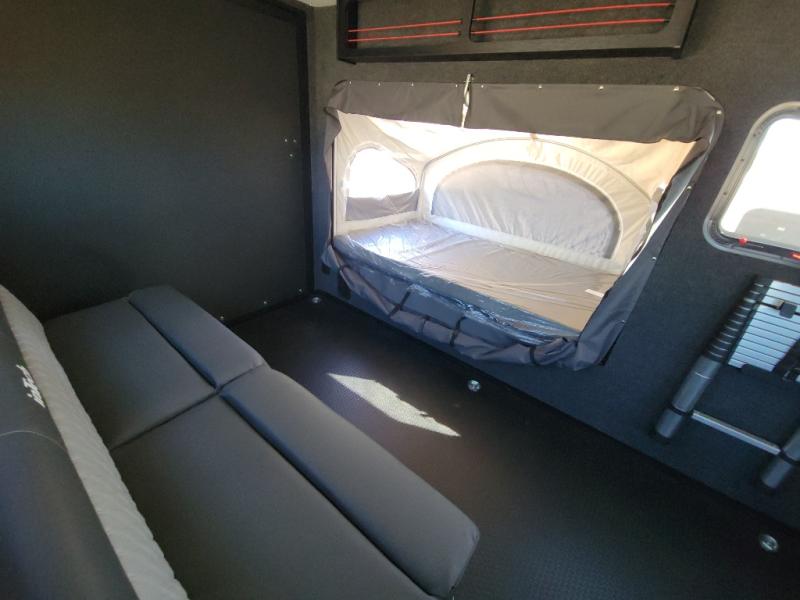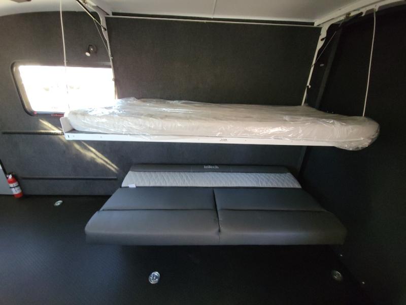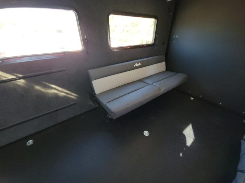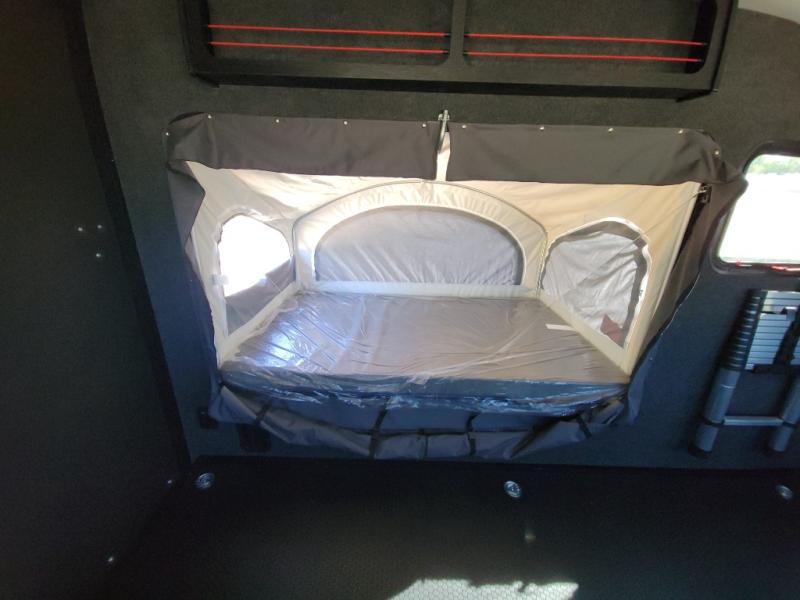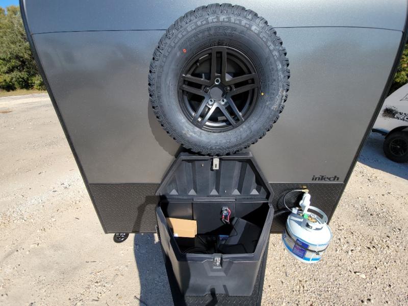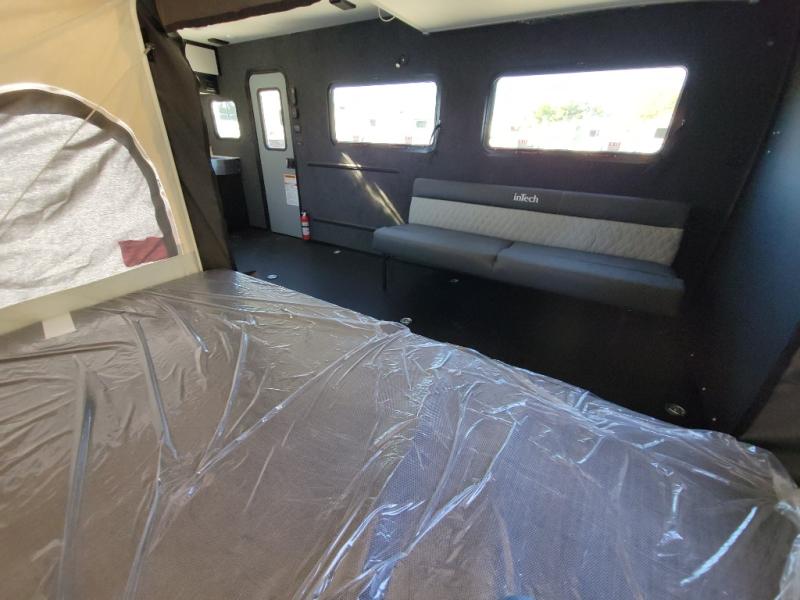 You asked for it and inTech RV delivered with this toy hauler expandable! You will enjoy some of the same features as the Discover model, but will also appreciate a wet bath in the Forge. There is a porcelain toilet, aluminum walls with a sealing exterior door so you don't need a shower curtain, storage space, and even a bath roof vent with an onboard switch! The kitchen includes everything you need to cook meals each day, including a two burner cooktop, a large farmhouse sink, and a spacious 8 cu.ft. 12V refrigerator! The 80" x 160" garage floor space features durable black coin flooring and is large enough to bring in most side-by-sides, plus there are tie-downs to keep your toys secure. For sleeping space, you'll find a tip-out bed and a standard sleeper sofa, and if you have more campers tagging along, you can add the optional drop-down bunk, or even bring your own air mattress! A few more stand-out features you'll love on the Forge are the on-demand LP water heater, the aluminum walk-on roof, tinted windows, and Airline Track sidewall tie-down area! The dry weight for this model ranges from 3,845 lbs. - 4,300 lbs., and the carrying capacity ranges from 2,700 lbs. - 3,155 lbs.