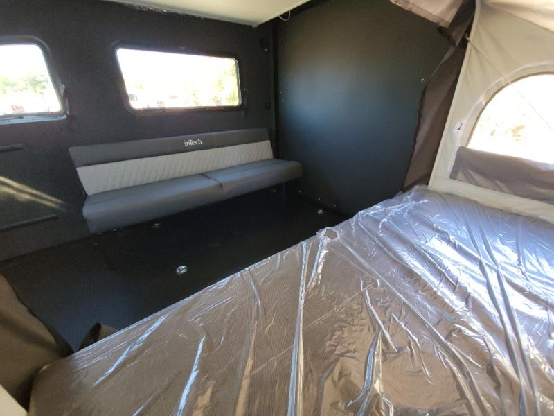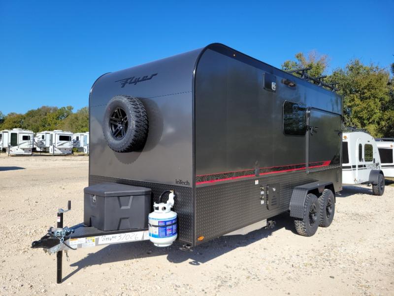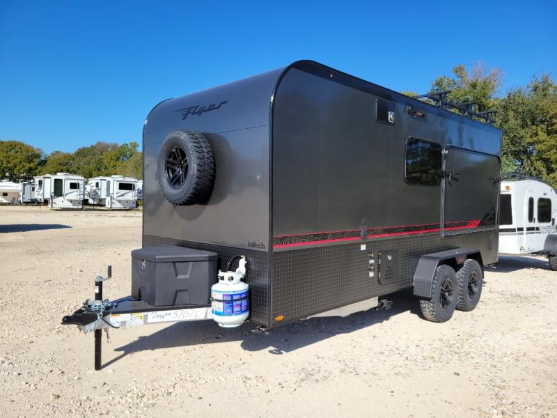The inTech RV Flyer travel trailers and toy hauler expandables are ready for adventure whenever you are! With the all-aluminum, all-tube cage frame, the Flyer has been built with lightweight and long-lasting materials so that you can enjoy your unit for many, many years. The Flyer has a rugged design so that you can confidently explore new territory and go where traditional RVs cannot. The Flyer has a 2" rear receiver rated for 175 pounds which allows you to bring along your bikes, and the Bluetooth stereo has two speakers you can always have your best music playing. The optional roof rack will allow you to bring along kayaks, and there are more available options depending on the model you choose.