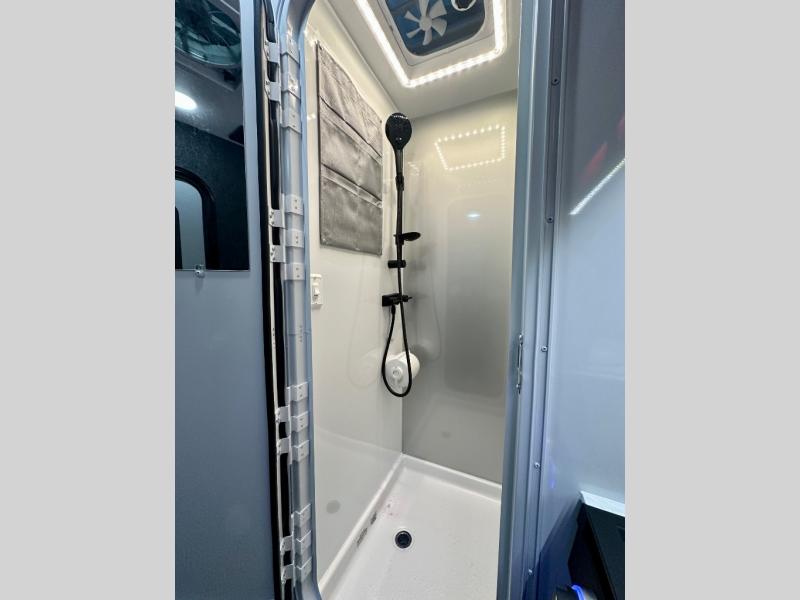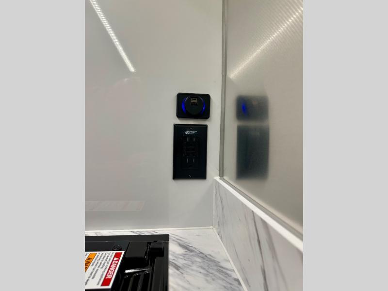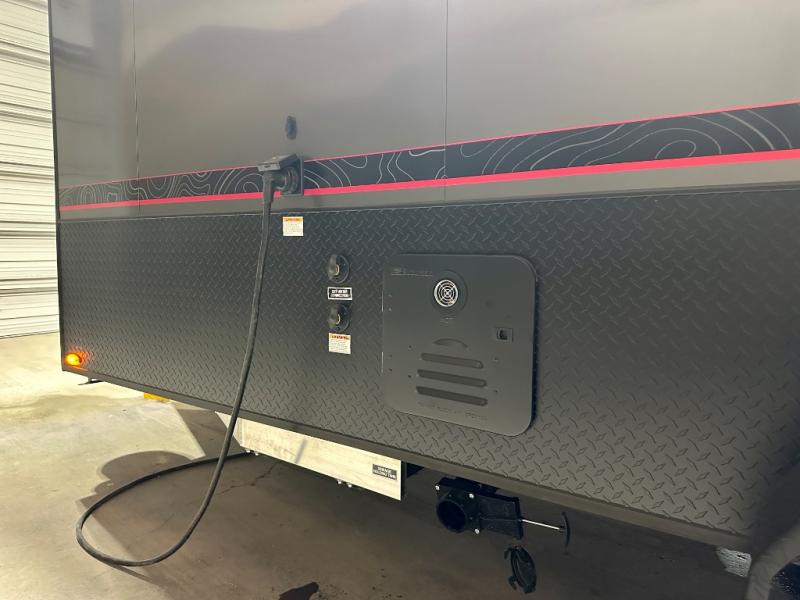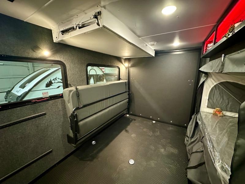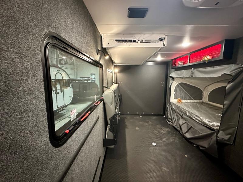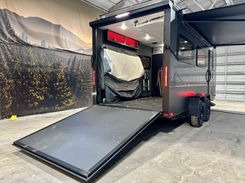 You asked for it and inTech RV delivered with this toy hauler expandable! You will enjoy some of the same features as the Discover model, but will also appreciate a wet bath in the Forge. There is a porcelain toilet, aluminum walls with a sealing exterior door so you don't need a shower curtain, storage space, and even a bath roof vent with an onboard switch! The kitchen includes everything you need to cook meals each day, including a two burner cooktop, a large farmhouse sink, and a spacious 8 cu.ft. 12V refrigerator! The 80" x 160" garage floor space features durable black coin flooring and is large enough to bring in most side-by-sides, plus there are tie-downs to keep your toys secure. For sleeping space, you'll find a tip-out bed and a standard sleeper sofa, and if you have more campers tagging along, you can add the optional drop-down bunk, or even bring your own air mattress! A few more stand-out features you'll love on the Forge are the on-demand LP water heater, the aluminum walk-on roof, tinted windows, and Airline Track sidewall tie-down area! The dry weight for this model ranges from 3,845 lbs. - 4,300 lbs., and the carrying capacity ranges from 2,700 lbs. - 3,155 lbs.