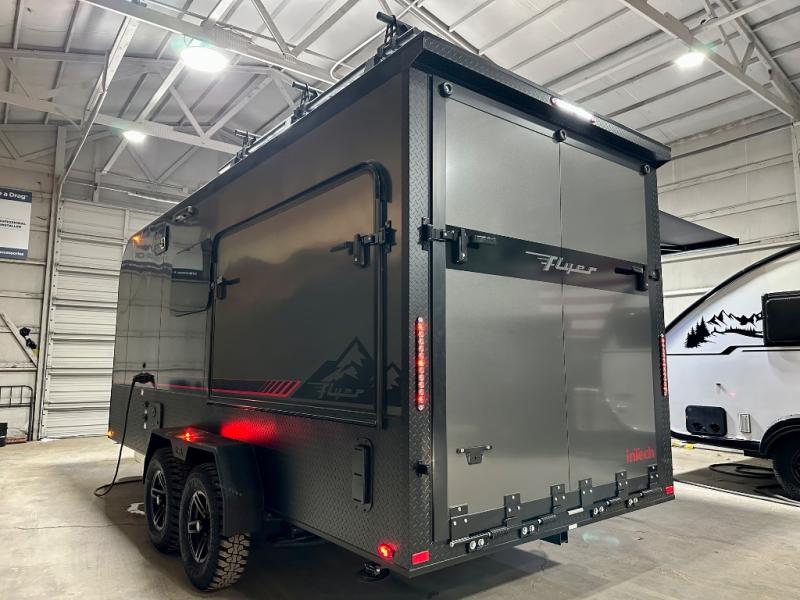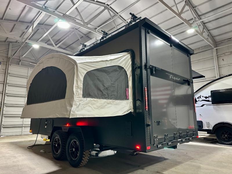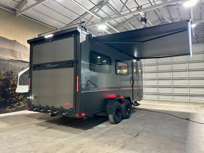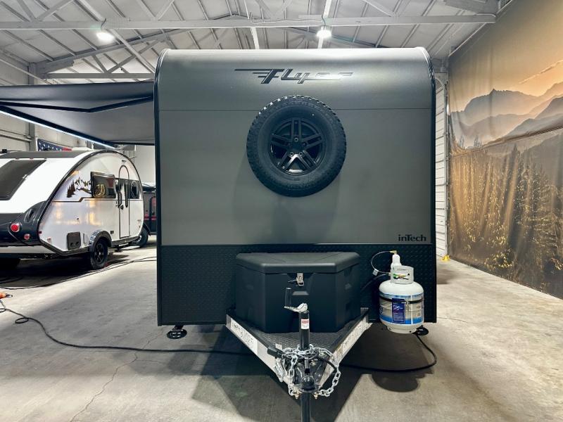 The inTech RV Flyer travel trailers and toy hauler expandables are ready for adventure whenever you are! With the all-aluminum, all-tube cage frame, the Flyer has been built with lightweight and long-lasting materials so that you can enjoy your unit for many, many years. The Flyer has a rugged design so that you can confidently explore new territory and go where traditional RVs cannot. The Flyer has a 2" rear receiver rated for 175 pounds which allows you to bring along your bikes, and the Bluetooth stereo has two speakers you can always have your best music playing. The optional roof rack will allow you to bring along kayaks, and there are more available options depending on the model you choose.