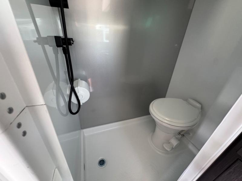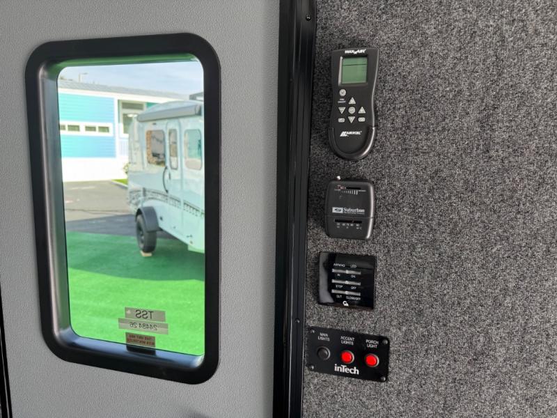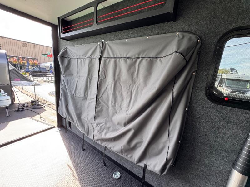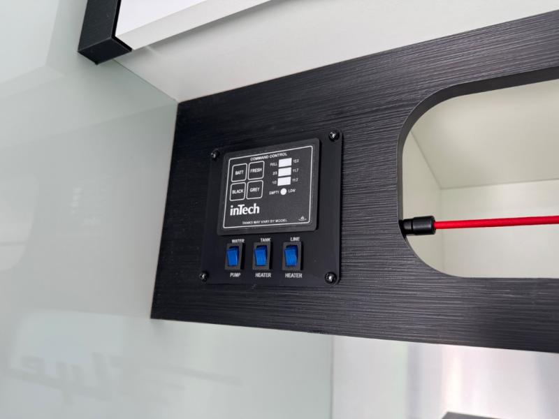 You asked for it and inTech RV delivered with this toy hauler expandable! You will enjoy some of the same features as the Discover model, but will also appreciate a wet bath in the Forge. There is a porcelain toilet, aluminum walls with a sealing exterior door so you don't need a shower curtain, storage space, and even a bath roof vent with an onboard switch! The kitchen includes everything you need to cook meals each day, including a two burner cooktop, a large farmhouse sink, and a spacious 8 cu.ft. 12V refrigerator! The 80" x 160" garage floor space features durable black coin flooring and is large enough to bring in most side-by-sides, plus there are tie-downs to keep your toys secure. For sleeping space, you'll find a tip-out bed and a standard sleeper sofa, and if you have more campers tagging along, you can add the optional drop-down bunk, or even bring your own air mattress! A few more stand-out features you'll love on the Forge are the on-demand LP water heater, the aluminum walk-on roof, tinted windows, and Airline Track sidewall tie-down area! The dry weight for this model ranges from 3,845 lbs. - 4,300 lbs., and the carrying capacity ranges from 2,700 lbs. - 3,155 lbs.