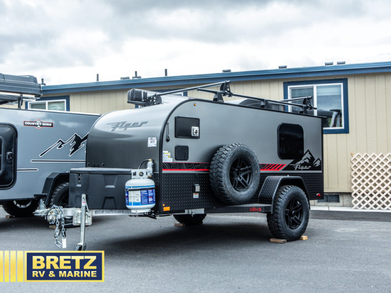 The inTech RV Flyer travel trailers and toy hauler expandables are ready for adventure whenever you are! With the all-aluminum, all-tube cage frame, the Flyer has been built with lightweight and long-lasting materials so that you can enjoy your unit for many, many years. The Flyer has a rugged design so that you can confidently explore new territory and go where traditional RVs cannot. The Flyer has a 2" rear receiver rated for 175 pounds which allows you to bring along your bikes, and the Bluetooth stereo has two speakers you can always have your best music playing. The optional roof rack will allow you to bring along kayaks, and there are more available options depending on the model you choose.