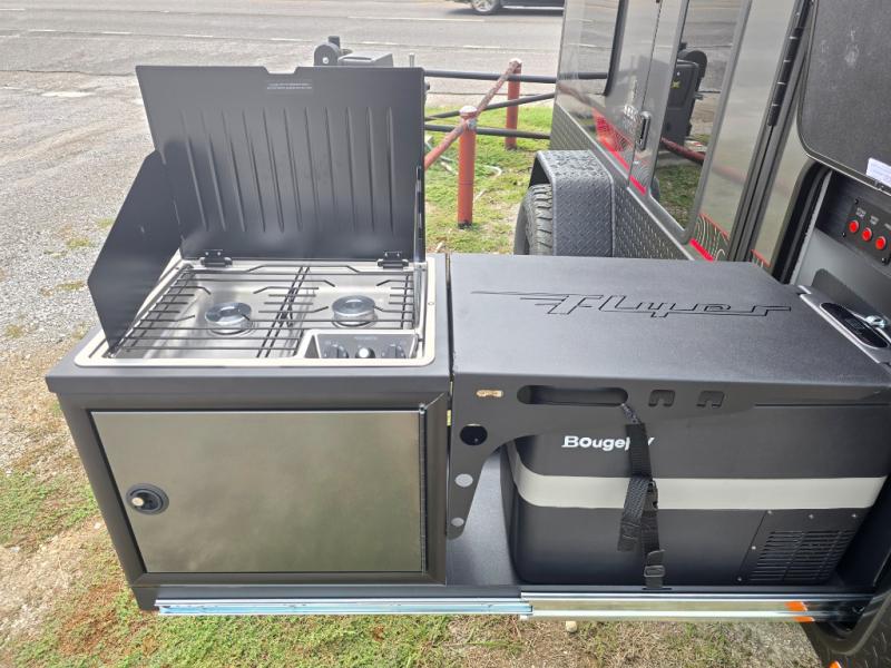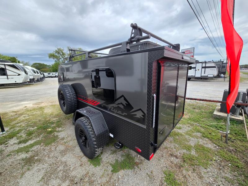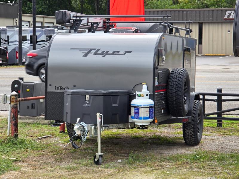 The inTech RV Flyer travel trailers and toy hauler expandables are ready for adventure whenever you are! With the all-aluminum, all-tube cage frame, the Flyer has been built with lightweight and long-lasting materials so that you can enjoy your unit for many, many years. The Flyer has a rugged design so that you can confidently explore new territory and go where traditional RVs cannot. The Flyer has a 2" rear receiver rated for 175 pounds which allows you to bring along your bikes, and the Bluetooth stereo has two speakers you can always have your best music playing. The optional roof rack will allow you to bring along kayaks, and there are more available options depending on the model you choose.