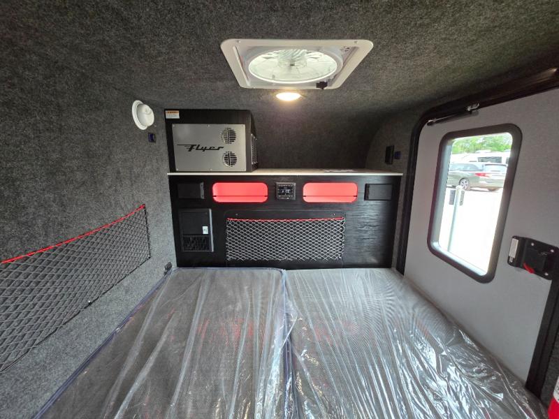 With this Flyer travel trailer, you have the freedom to tackle any adventure! This trailer has been built to be tough enough to explore all corners of the world. This trailer has a versatile interior that can be used for many different types of travels, and it has a 59" x 78" bed for a comfortable place to relax throughout the day or night. You might like to add the optional Adventure Package that includes off-road tires, a slide out kitchen, an A/C, plus a roof rack for kayaks! This trailer has a dry weight that ranges from 1,195-1,690 LBS, a tongue weight that ranges from 240-395 LBS, and a net carrying capacity that ranges from 510-1,005 LBS.