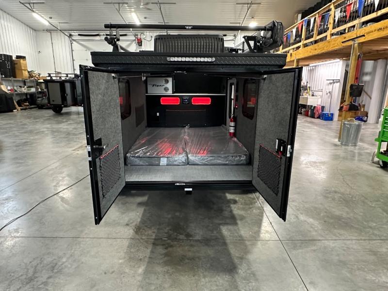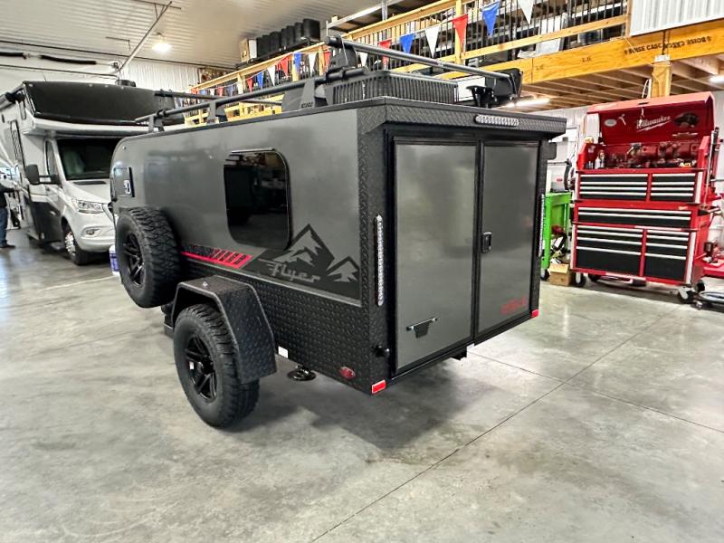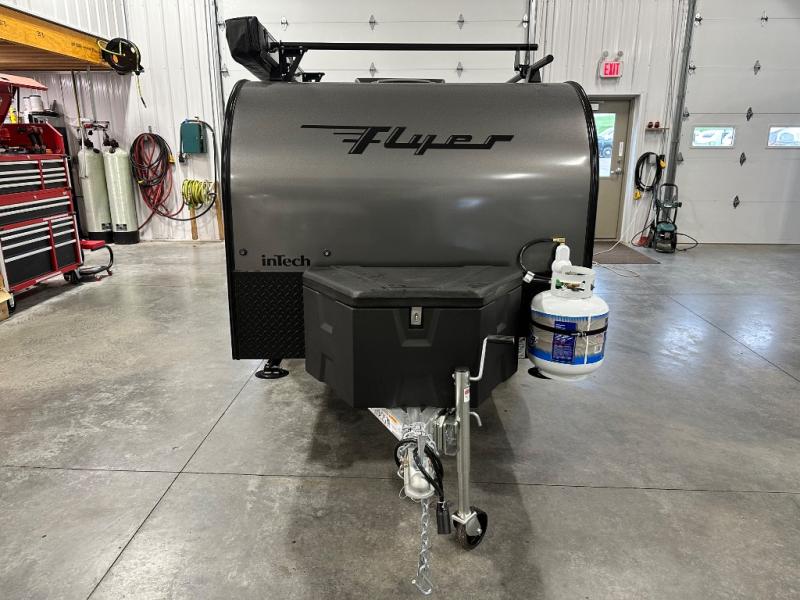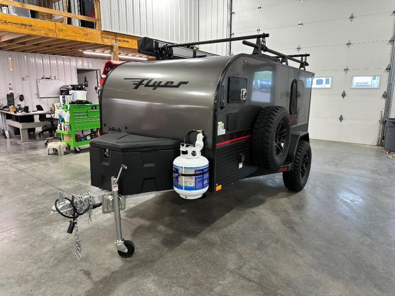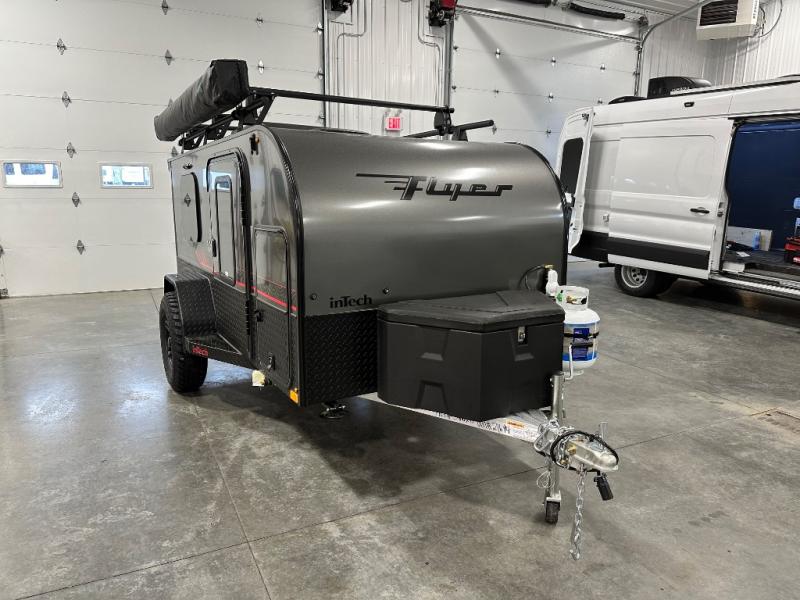 The inTech RV Flyer travel trailers and toy hauler expandables are ready for adventure whenever you are! With the all-aluminum, all-tube cage frame, the Flyer has been built with lightweight and long-lasting materials so that you can enjoy your unit for many, many years. The Flyer has a rugged design so that you can confidently explore new territory and go where traditional RVs cannot. The Flyer has a 2" rear receiver rated for 175 pounds which allows you to bring along your bikes, and the Bluetooth stereo has two speakers you can always have your best music playing. The optional roof rack will allow you to bring along kayaks, and there are more available options depending on the model you choose.