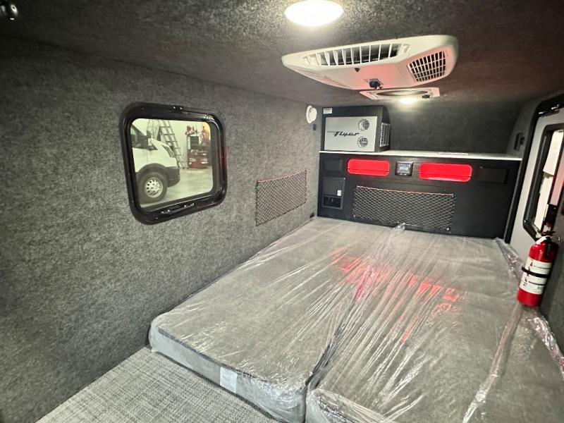With this Flyer travel trailer, you have the freedom to tackle any adventure! This trailer has been built to be tough enough to explore all corners of the world. This trailer has a versatile interior that can be used for many different types of travels, and it has a 59" x 78" bed for a comfortable place to relax throughout the day or night. You might like to add the optional Adventure Package that includes off-road tires, a slide out kitchen, an A/C, plus a roof rack for kayaks! This trailer has a dry weight that ranges from 1,195-1,690 LBS, a tongue weight that ranges from 240-395 LBS, and a net carrying capacity that ranges from 510-1,005 LBS.