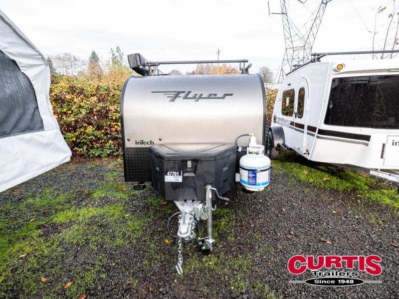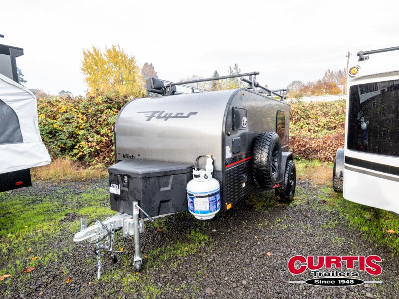 The inTech RV Flyer travel trailers and toy hauler expandables are ready for adventure whenever you are! With the all-aluminum, all-tube cage frame, the Flyer has been built with lightweight and long-lasting materials so that you can enjoy your unit for many, many years. The Flyer has a rugged design so that you can confidently explore new territory and go where traditional RVs cannot. The Flyer has a 2" rear receiver rated for 175 pounds which allows you to bring along your bikes, and the Bluetooth stereo has two speakers you can always have your best music playing. The optional roof rack will allow you to bring along kayaks, and there are more available options depending on the model you choose.