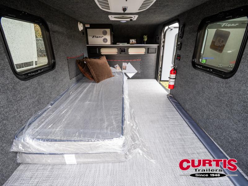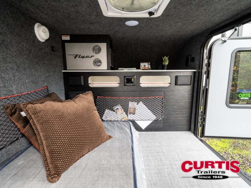 With this Flyer travel trailer, you have the freedom to tackle any adventure! This trailer has been built to be tough enough to explore all corners of the world. This trailer has a versatile interior that can be used for many different types of travels, and it has a 59" x 78" bed for a comfortable place to relax throughout the day or night. You might like to add the optional Adventure Package that includes off-road tires, a slide out kitchen, an A/C, plus a roof rack for kayaks! This trailer has a dry weight that ranges from 1,195-1,690 LBS, a tongue weight that ranges from 240-395 LBS, and a net carrying capacity that ranges from 510-1,005 LBS.