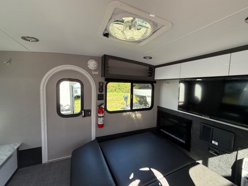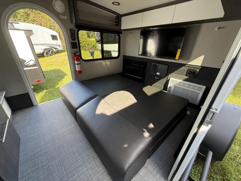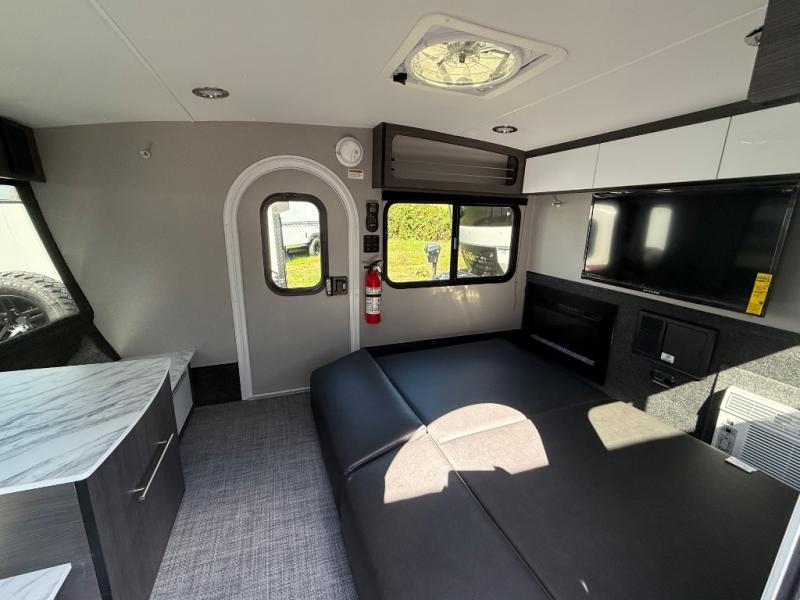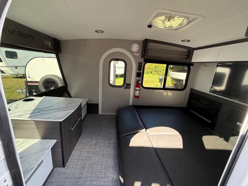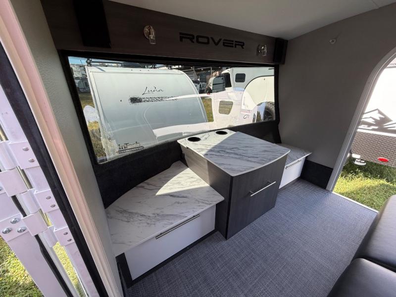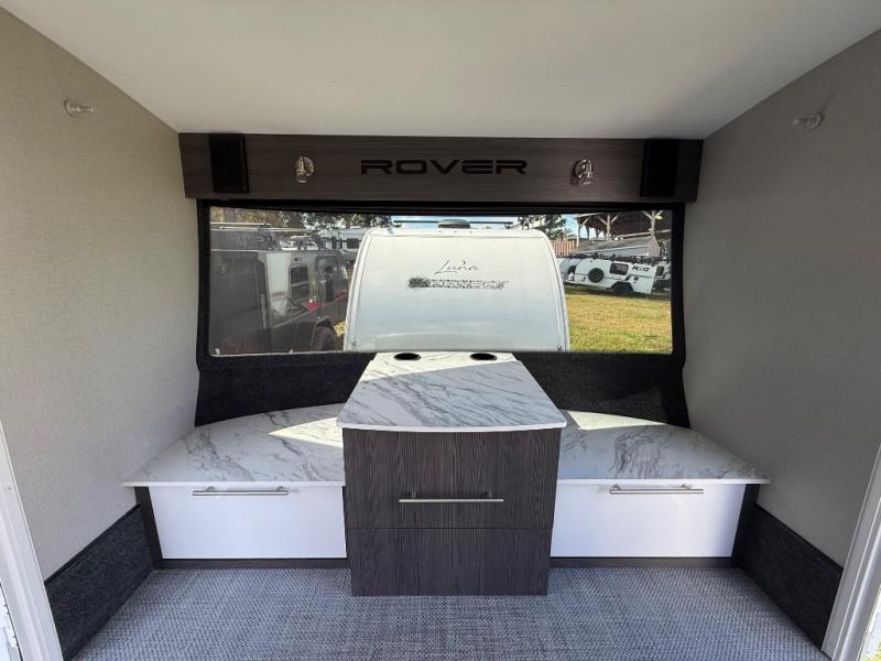 Each Luna teardrop trailer by inTech RV is constructed with an all-aluminum, all-tube, cage frame, a one piece fiberglass roof, plus bubble foil insulation to provide a durable unit made to last. You will always stay cool with the 8,000 BTU A/C and the MaxxAir vent fan. Each model includes an outside kitchen with a 40qt. 12V cooler to store your cold food, a stainless steel cooktop, plus plenty of storage space for all your necessities. Inside, you'll enjoy the Infinity Woven flooring, two tinted windows with shades and screens, a Bluetooth stereo with four speakers and a 32" TV, plus USB ports and outlets to keep your phone and tablet charged. You'll appreciate the 1,775 lbs. to 1,850 lbs. dry weights for easy towing and the Rover Package that includes an aluminum tube rear bumper, rugged decals, integrated side steps, and an adjustable roof rack for luggage or kayaks!