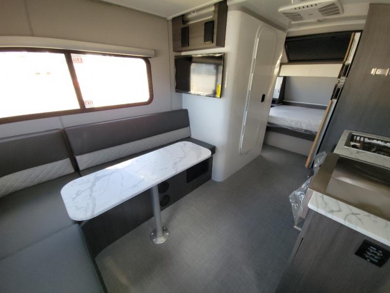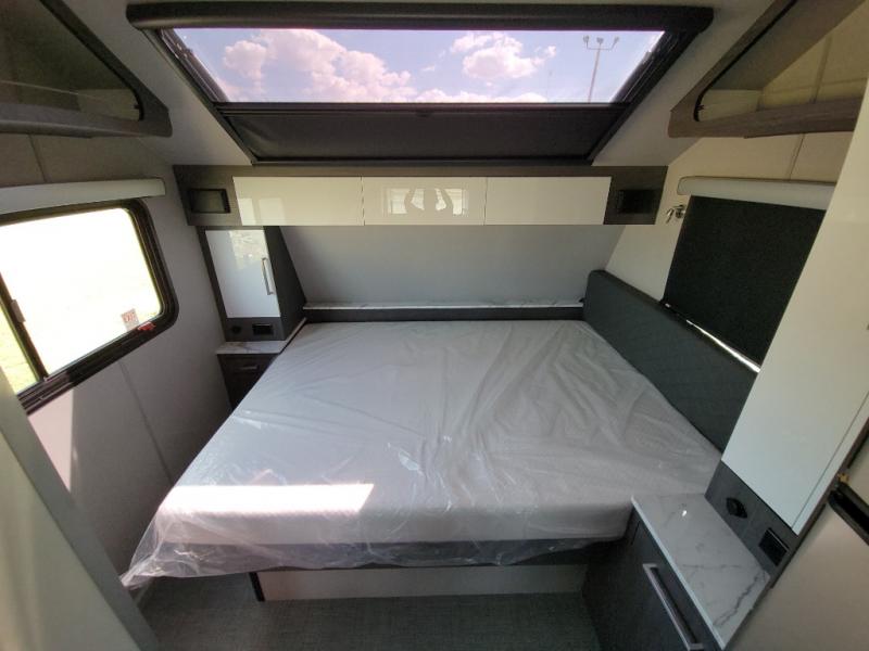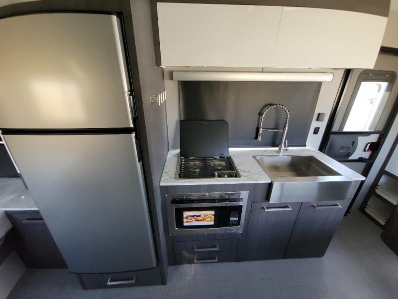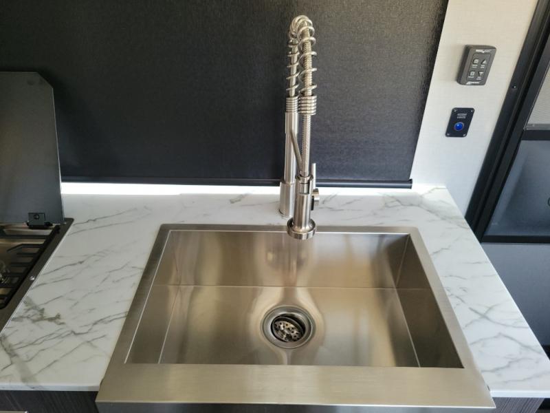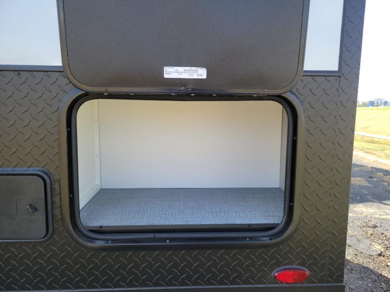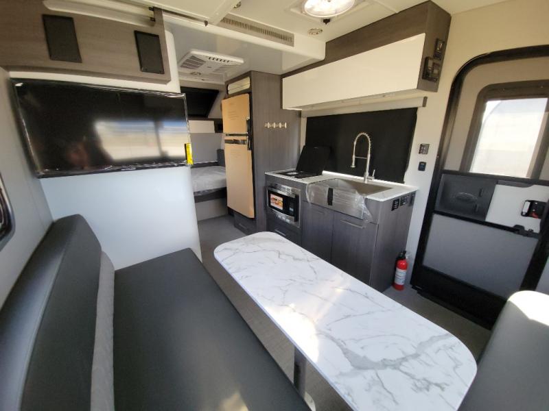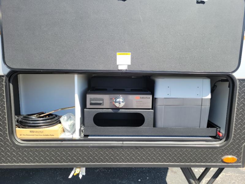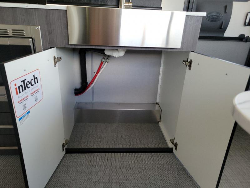 The O-R-V travel trailers and toy hauler by inTech RV allow you to experience adventure off the beaten path with its rugged exterior and lightweight construction provided by the all-aluminum fully welded cage frame. The power tongue jack will make setting up camp a breeze, plus there is a fold-away double entry step and exterior lighting for added convenience. Inside, you'll find a large farmhouse style sink, a MaxxAir vent for ventilation, plus infinity woven flooring. There is a Bluetooth stereo with four speakers and a 32" Smart TV included with each model, plus USB and 110V outlets to keep your electronics charged and ready to go. Further customize your O-V-R by adding the optional power awning or the optional Off-Grid Package with 400 watts of solar power, 20 amp hours of lithium batteries, and a 2,000 watt inverter!