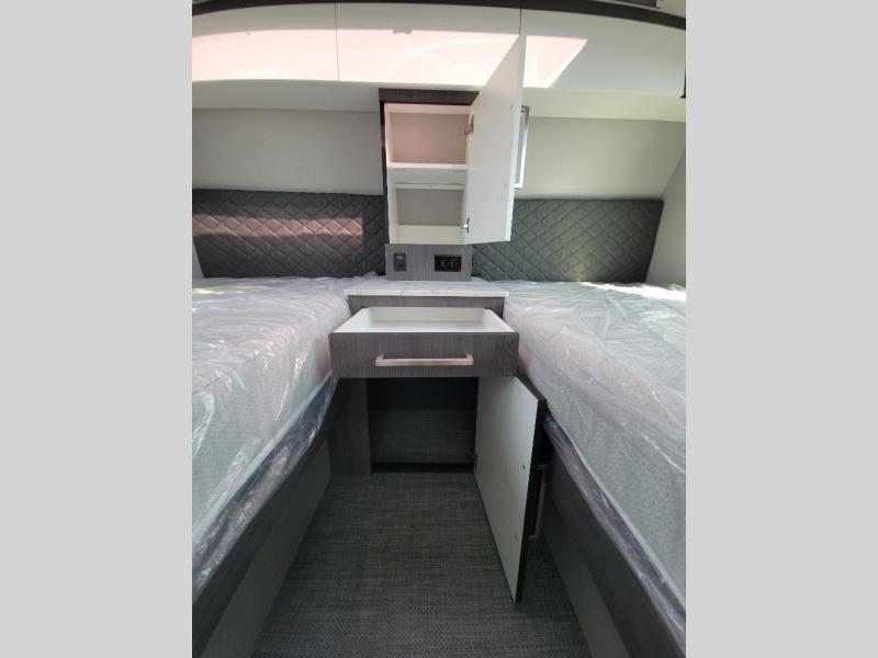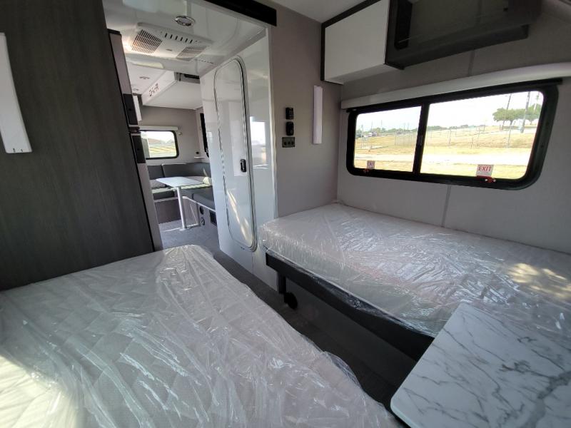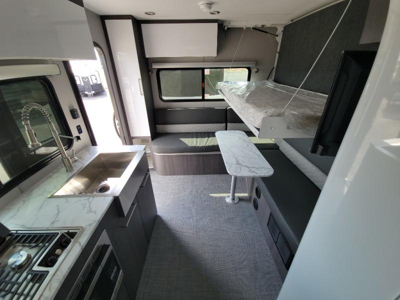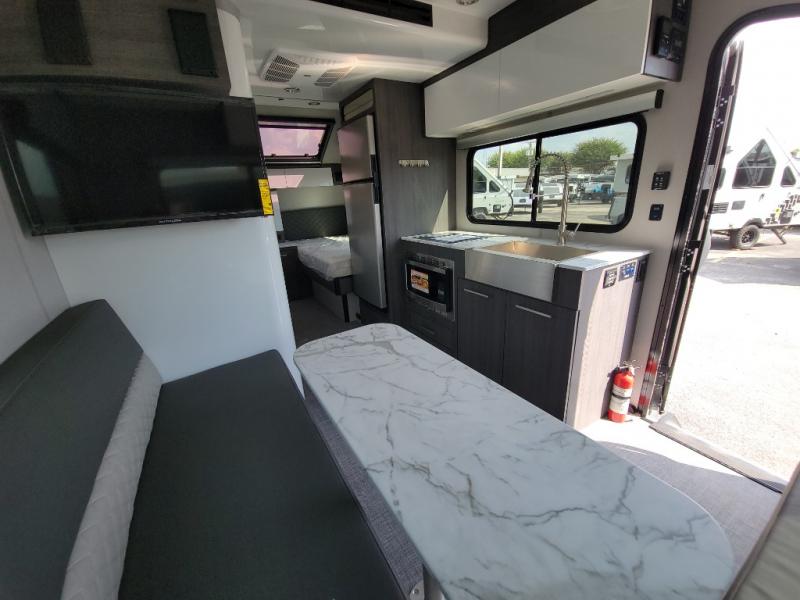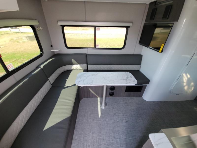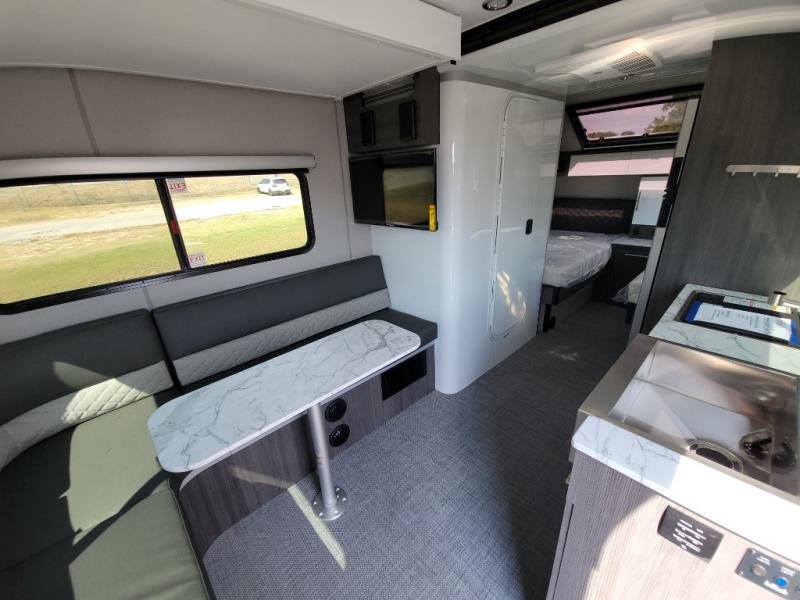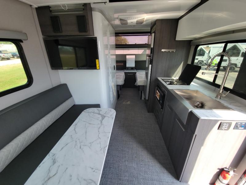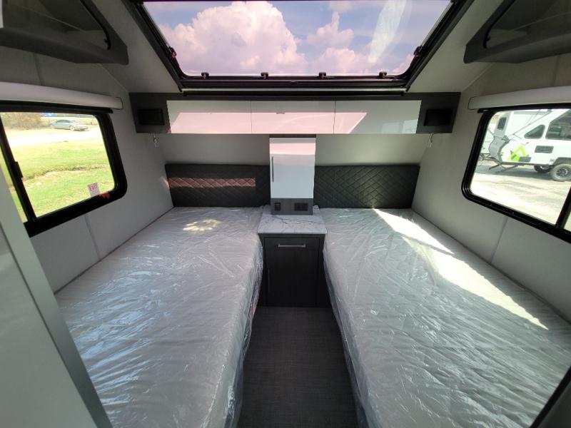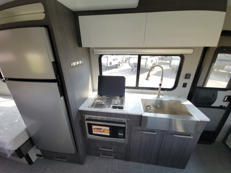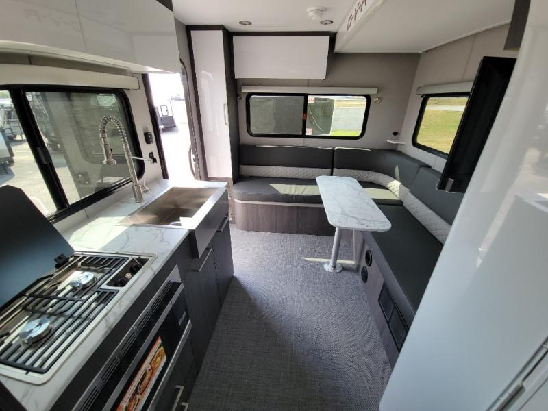 The O-R-V travel trailers and toy hauler by inTech RV allow you to experience adventure off the beaten path with its rugged exterior and lightweight construction provided by the all-aluminum fully welded cage frame. The power tongue jack will make setting up camp a breeze, plus there is a fold-away double entry step and exterior lighting for added convenience. Inside, you'll find a large farmhouse style sink, a MaxxAir vent for ventilation, plus infinity woven flooring. There is a Bluetooth stereo with four speakers and a 32" Smart TV included with each model, plus USB and 110V outlets to keep your electronics charged and ready to go. Further customize your O-V-R by adding the optional power awning or the optional Off-Grid Package with 400 watts of solar power, 20 amp hours of lithium batteries, and a 2,000 watt inverter!