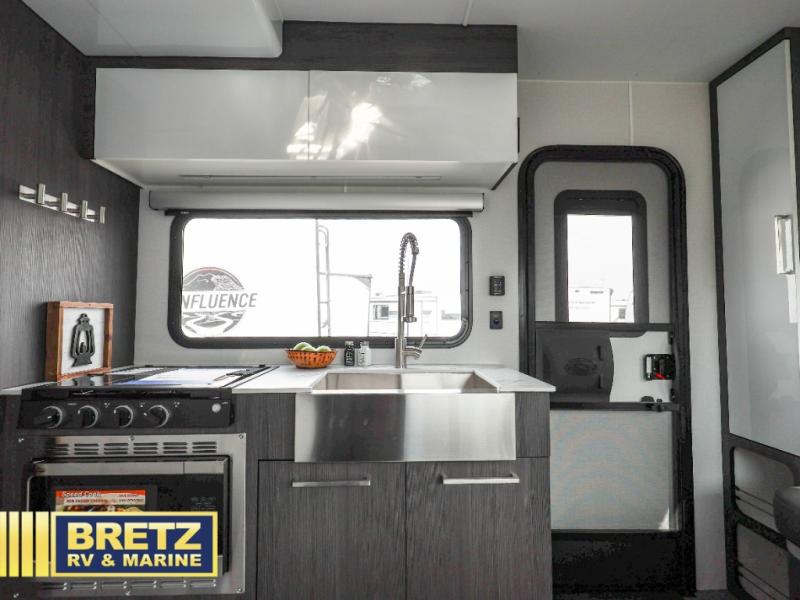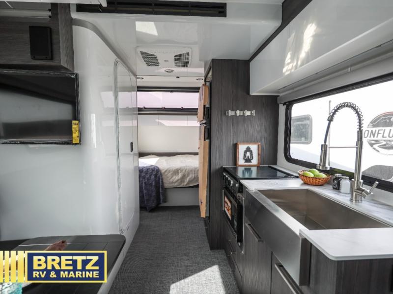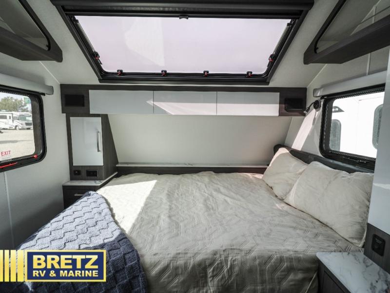 The O-R-V travel trailers and toy hauler by inTech RV allow you to experience adventure off the beaten path with its rugged exterior and lightweight construction provided by the all-aluminum fully welded cage frame. The power tongue jack will make setting up camp a breeze, plus there is a fold-away double entry step and exterior lighting for added convenience. Inside, you'll find a large farmhouse style sink, a MaxxAir vent for ventilation, plus infinity woven flooring. There is a Bluetooth stereo with four speakers and a 32" Smart TV included with each model, plus USB and 110V outlets to keep your electronics charged and ready to go. Further customize your O-V-R by adding the optional power awning or the optional Off-Grid Package with 400 watts of solar power, 20 amp hours of lithium batteries, and a 2,000 watt inverter!