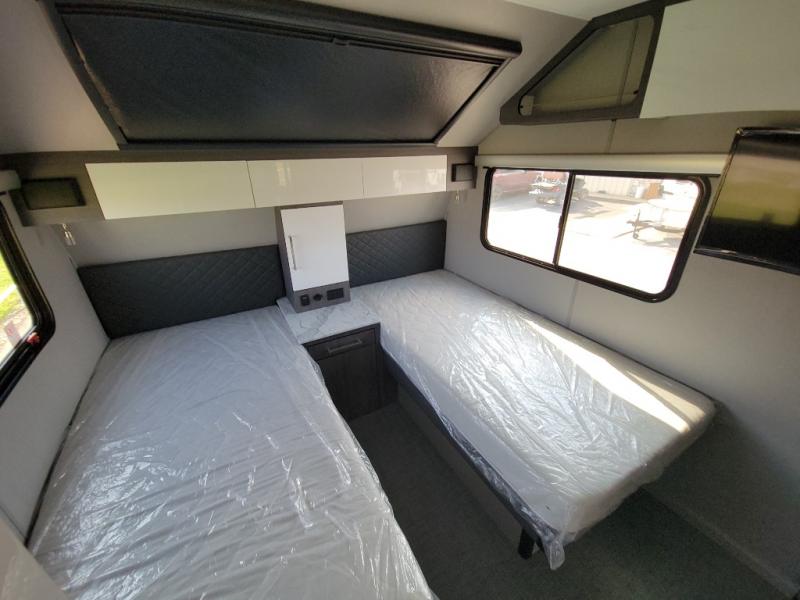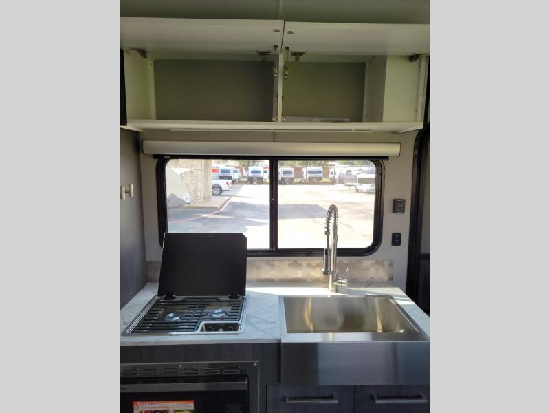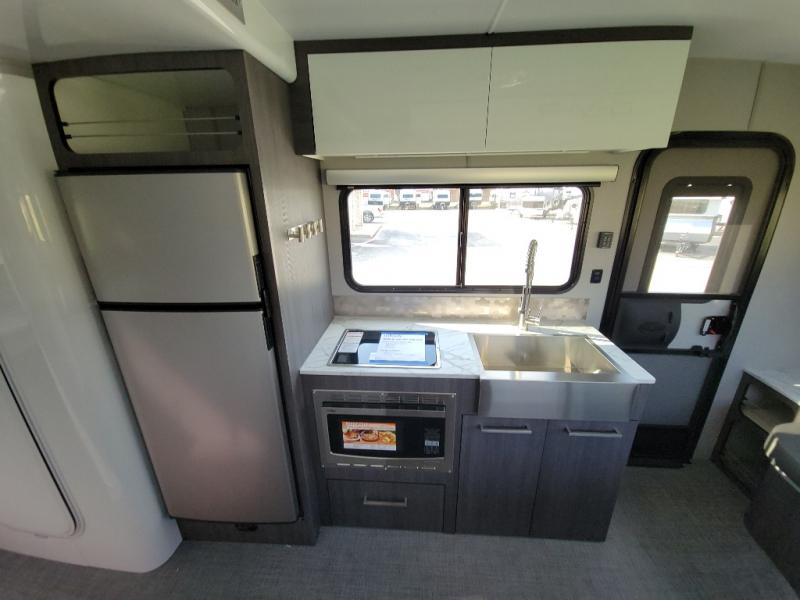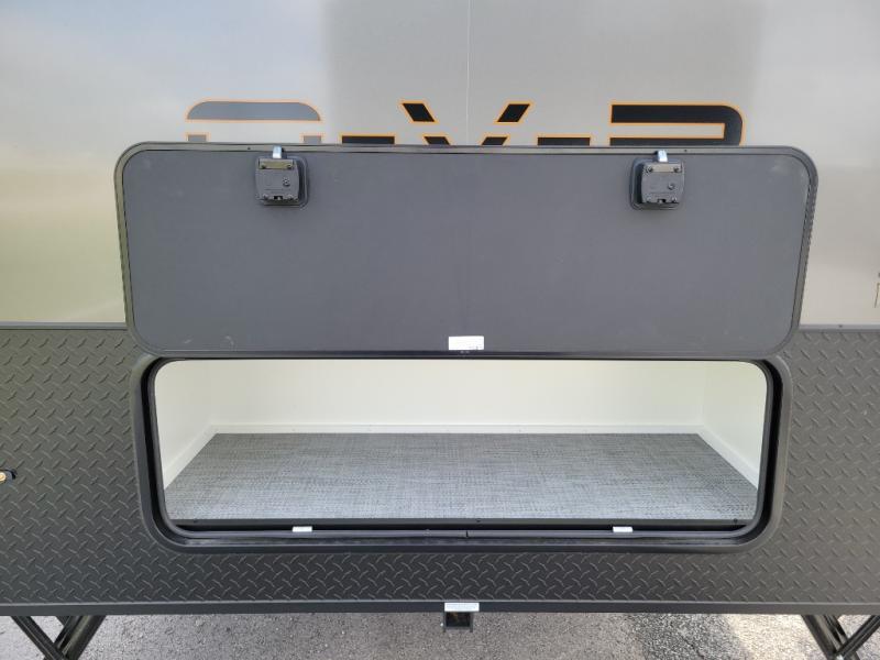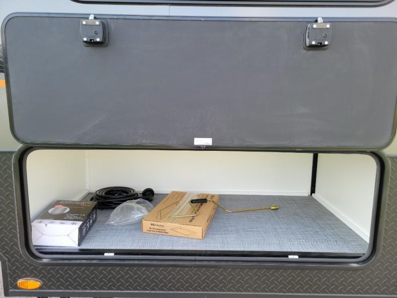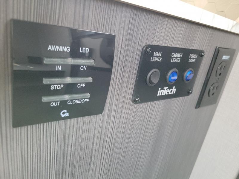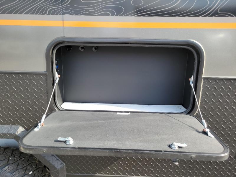 The O-R-V travel trailers and toy hauler by inTech RV allow you to experience adventure off the beaten path with its rugged exterior and lightweight construction provided by the all-aluminum fully welded cage frame. The power tongue jack will make setting up camp a breeze, plus there is a fold-away double entry step and exterior lighting for added convenience. Inside, you'll find a large farmhouse style sink, a MaxxAir vent for ventilation, plus infinity woven flooring. There is a Bluetooth stereo with four speakers and a 32" Smart TV included with each model, plus USB and 110V outlets to keep your electronics charged and ready to go. Further customize your O-V-R by adding the optional power awning or the optional Off-Grid Package with 400 watts of solar power, 20 amp hours of lithium batteries, and a 2,000 watt inverter!