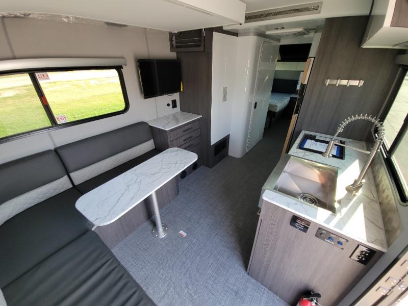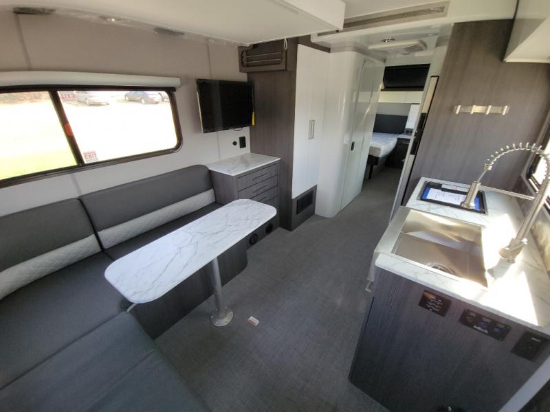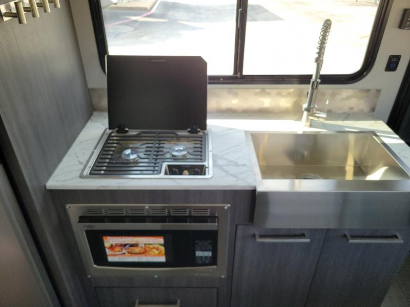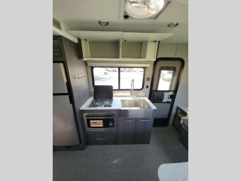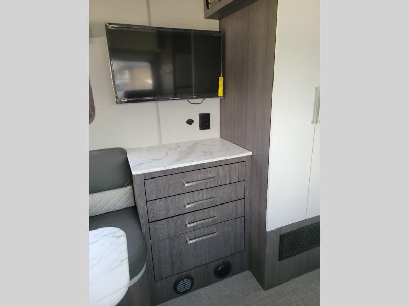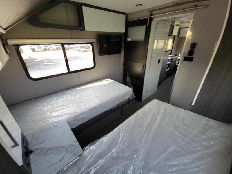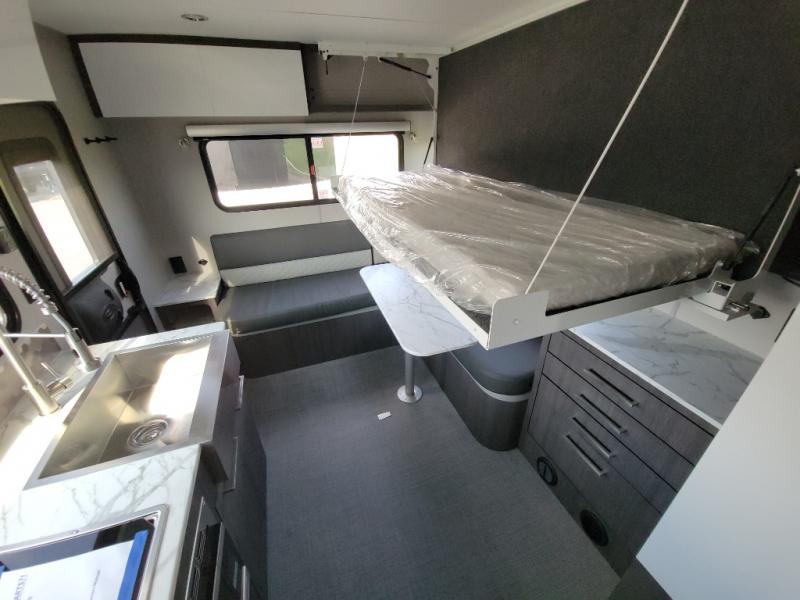 The O-R-V travel trailers and toy hauler by inTech RV allow you to experience adventure off the beaten path with its rugged exterior and lightweight construction provided by the all-aluminum fully welded cage frame. The power tongue jack will make setting up camp a breeze, plus there is a fold-away double entry step and exterior lighting for added convenience. Inside, you'll find a large farmhouse style sink, a MaxxAir vent for ventilation, plus infinity woven flooring. There is a Bluetooth stereo with four speakers and a 32" Smart TV included with each model, plus USB and 110V outlets to keep your electronics charged and ready to go. Further customize your O-V-R by adding the optional power awning or the optional Off-Grid Package with 400 watts of solar power, 20 amp hours of lithium batteries, and a 2,000 watt inverter!