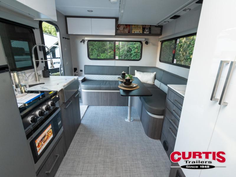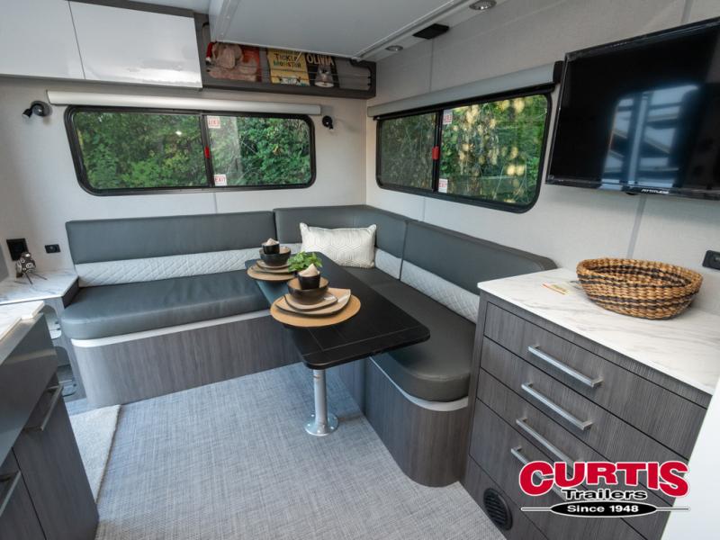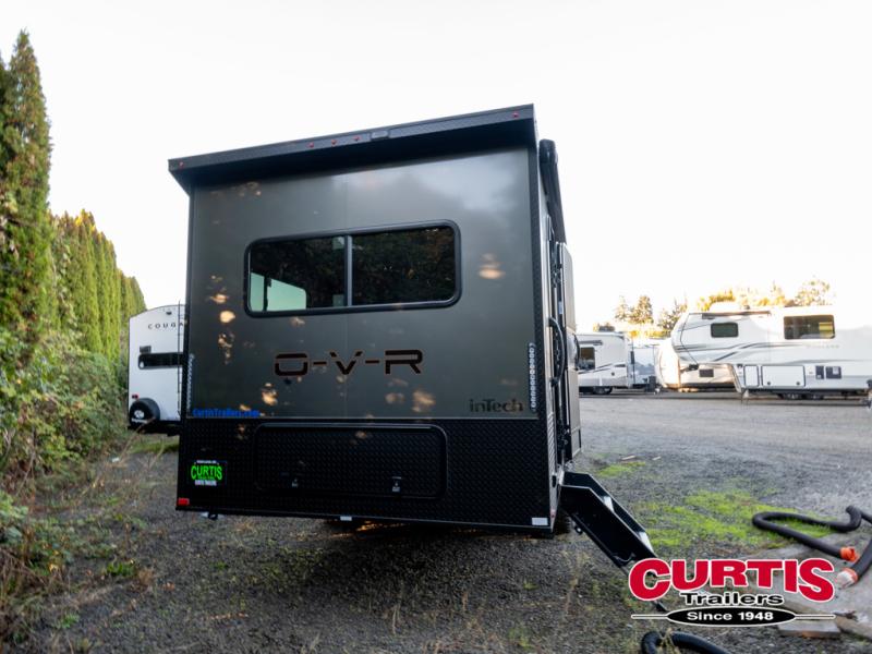 The O-R-V travel trailers and toy hauler by inTech RV allow you to experience adventure off the beaten path with its rugged exterior and lightweight construction provided by the all-aluminum fully welded cage frame. The power tongue jack will make setting up camp a breeze, plus there is a fold-away double entry step and exterior lighting for added convenience. Inside, you'll find a large farmhouse style sink, a MaxxAir vent for ventilation, plus infinity woven flooring. There is a Bluetooth stereo with four speakers and a 32" Smart TV included with each model, plus USB and 110V outlets to keep your electronics charged and ready to go. Further customize your O-V-R by adding the optional power awning or the optional Off-Grid Package with 400 watts of solar power, 20 amp hours of lithium batteries, and a 2,000 watt inverter!