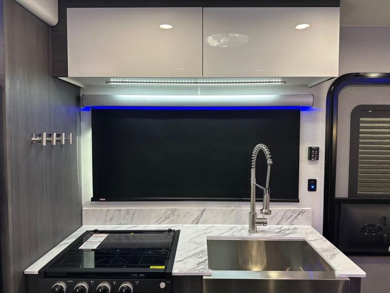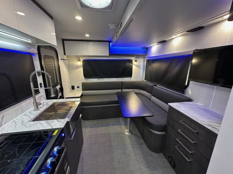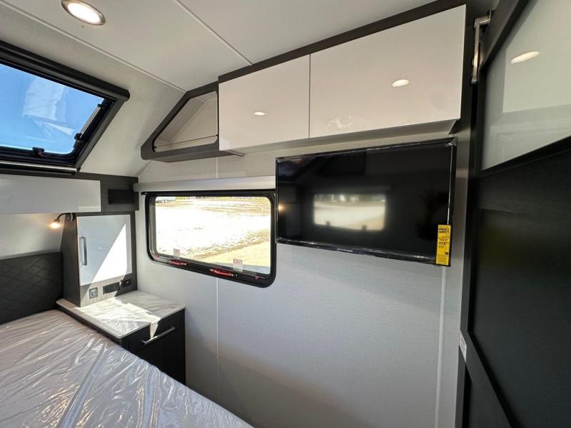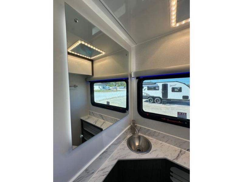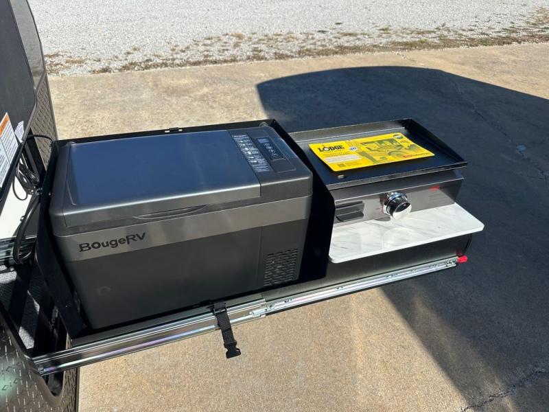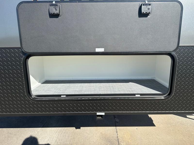 The O-R-V travel trailers and toy hauler by inTech RV allow you to experience adventure off the beaten path with its rugged exterior and lightweight construction provided by the all-aluminum fully welded cage frame. The power tongue jack will make setting up camp a breeze, plus there is a fold-away double entry step and exterior lighting for added convenience. Inside, you'll find a large farmhouse style sink, a MaxxAir vent for ventilation, plus infinity woven flooring. There is a Bluetooth stereo with four speakers and a 32" Smart TV included with each model, plus USB and 110V outlets to keep your electronics charged and ready to go. Further customize your O-V-R by adding the optional power awning or the optional Off-Grid Package with 400 watts of solar power, 20 amp hours of lithium batteries, and a 2,000 watt inverter!