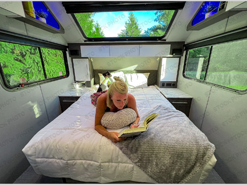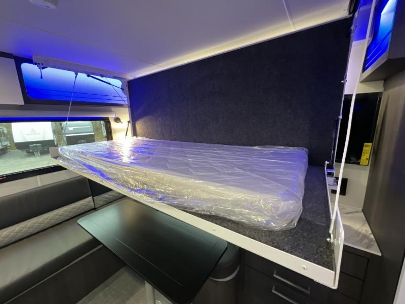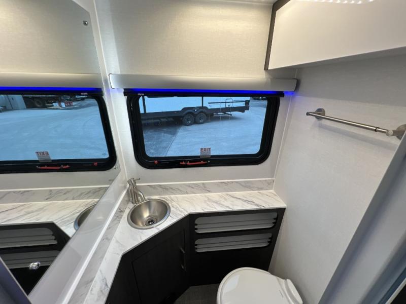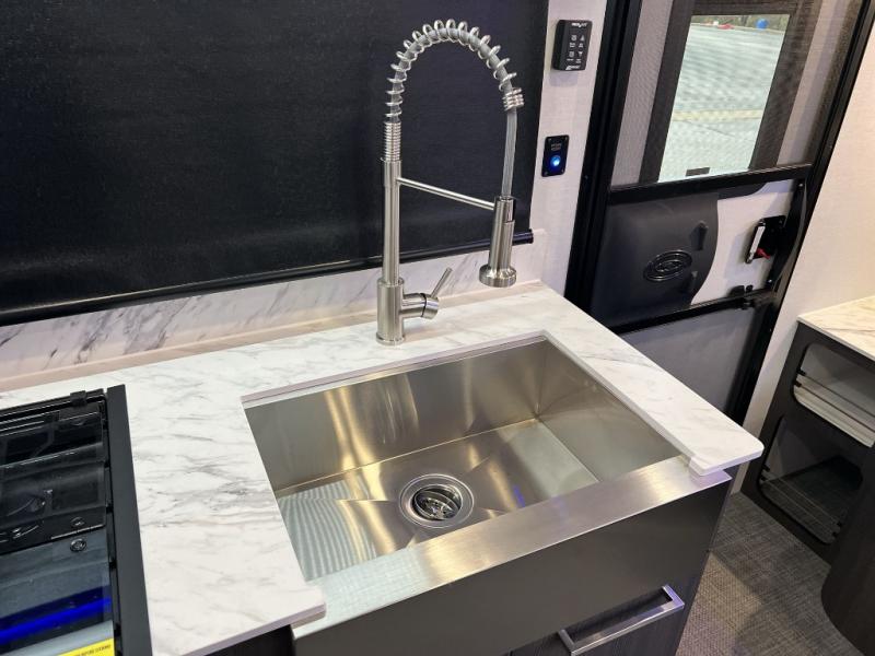 The O-R-V travel trailers and toy hauler by inTech RV allow you to experience adventure off the beaten path with its rugged exterior and lightweight construction provided by the all-aluminum fully welded cage frame. The power tongue jack will make setting up camp a breeze, plus there is a fold-away double entry step and exterior lighting for added convenience. Inside, you'll find a large farmhouse style sink, a MaxxAir vent for ventilation, plus infinity woven flooring. There is a Bluetooth stereo with four speakers and a 32" Smart TV included with each model, plus USB and 110V outlets to keep your electronics charged and ready to go. Further customize your O-V-R by adding the optional power awning or the optional Off-Grid Package with 400 watts of solar power, 20 amp hours of lithium batteries, and a 2,000 watt inverter!