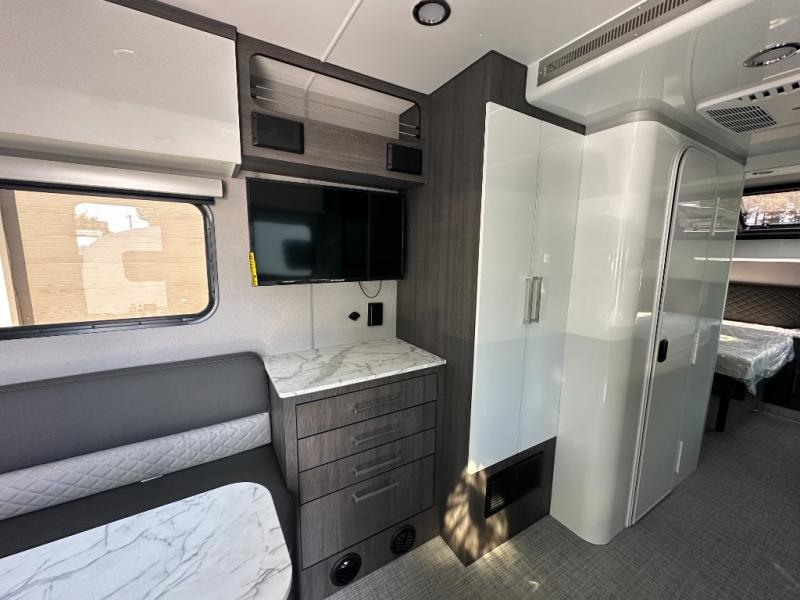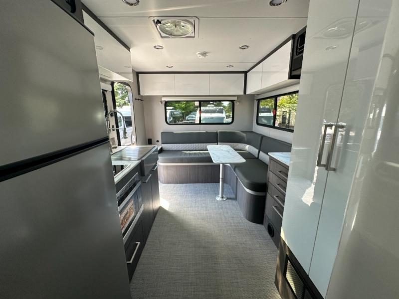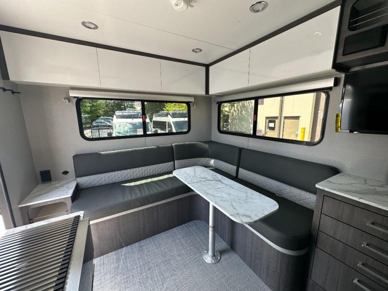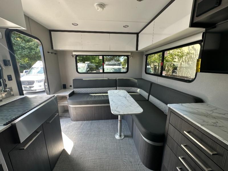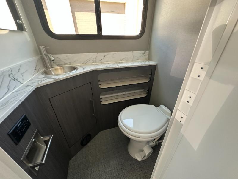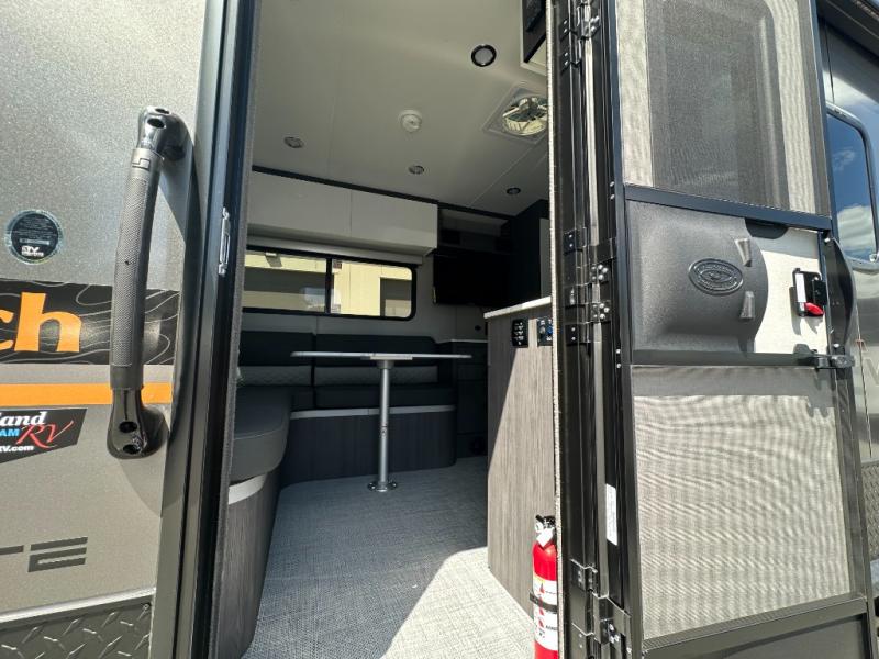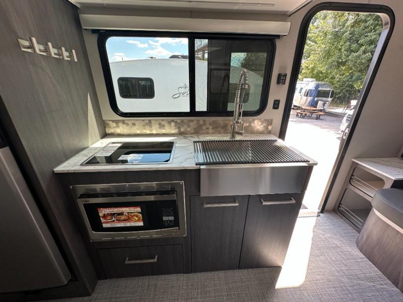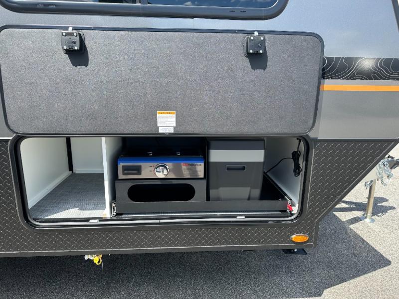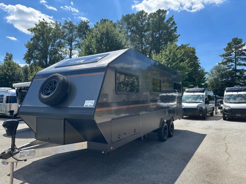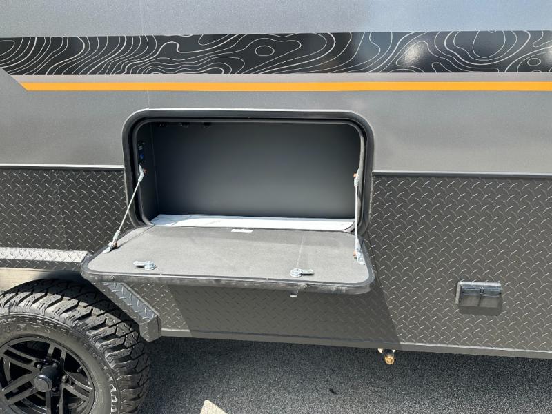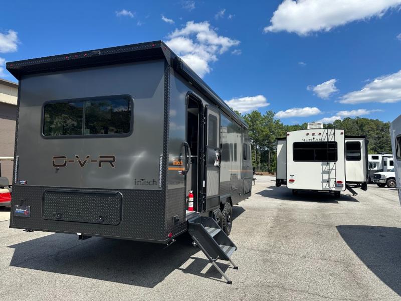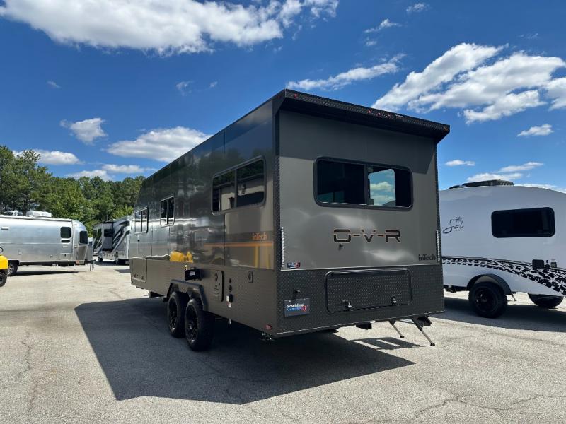The O-R-V travel trailers and toy hauler by inTech RV allow you to experience adventure off the beaten path with its rugged exterior and lightweight construction provided by the all-aluminum fully welded cage frame. The power tongue jack will make setting up camp a breeze, plus there is a fold-away double entry step and exterior lighting for added convenience. Inside, you'll find a large farmhouse style sink, a MaxxAir vent for ventilation, plus infinity woven flooring. There is a Bluetooth stereo with four speakers and a 32" Smart TV included with each model, plus USB and 110V outlets to keep your electronics charged and ready to go. Further customize your O-V-R by adding the optional power awning or the optional Off-Grid Package with 400 watts of solar power, 20 amp hours of lithium batteries, and a 2,000 watt inverter!
