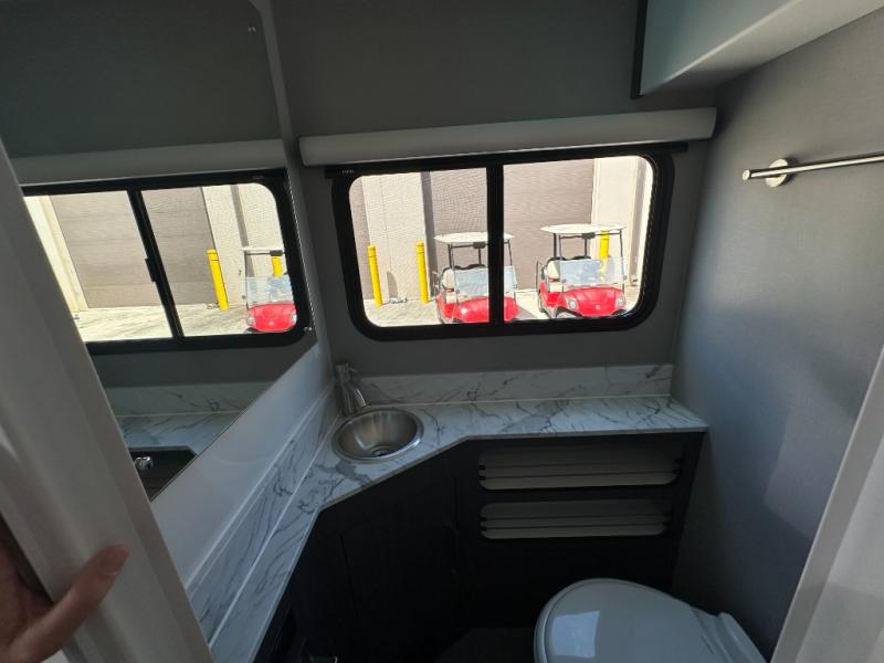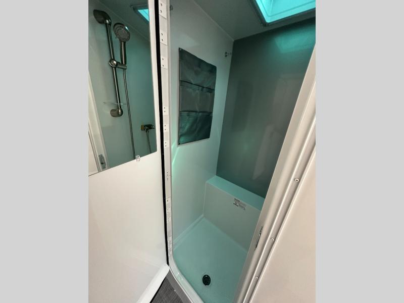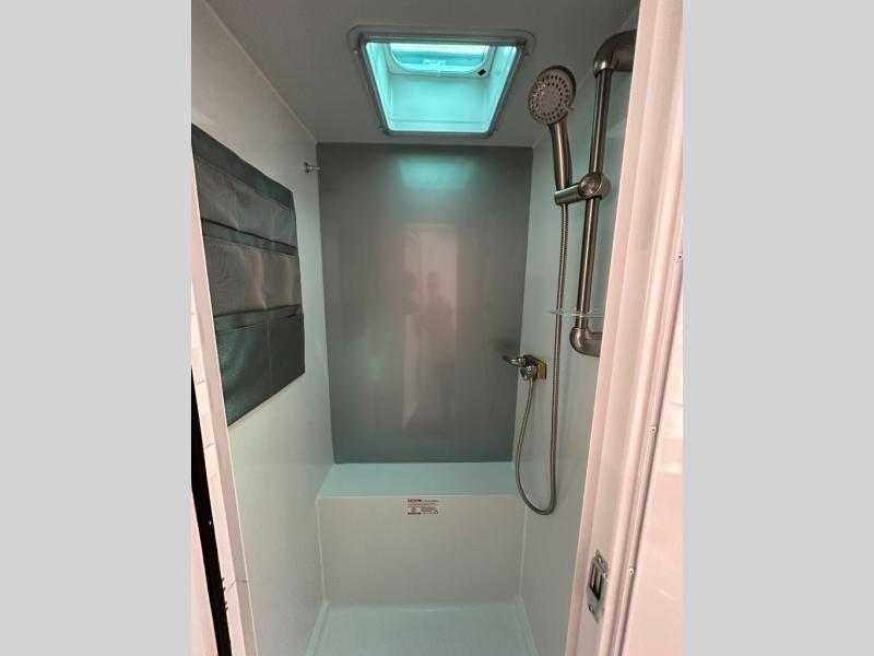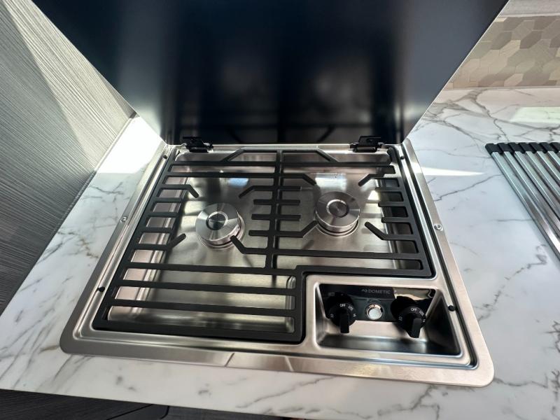 Navigate tough roads in this O-V-R travel trailer! You will love having your own walk-around queen bed in the front bedroom, or you can choose the optional twin beds in place of the queen bed. There is a private porcelain toilet and a round sink across the hall from the shower, allowing two people to freshen up at once, and you'll appreciate the base cabinet with under-sink storage for your toiletries. Once you've worked up an appetite from hiking, head to the kitchen to prepare lunch on the stainless steel two burner cooktop and grab a cold drink from the 10 cu. ft. 12V refrigerator. You can dine at the L-shaped dinette, or head outdoors to relax in your camp chair. Add the optional slide out exterior kitchen or the optional 3.6kW LP generator for even more convenience!