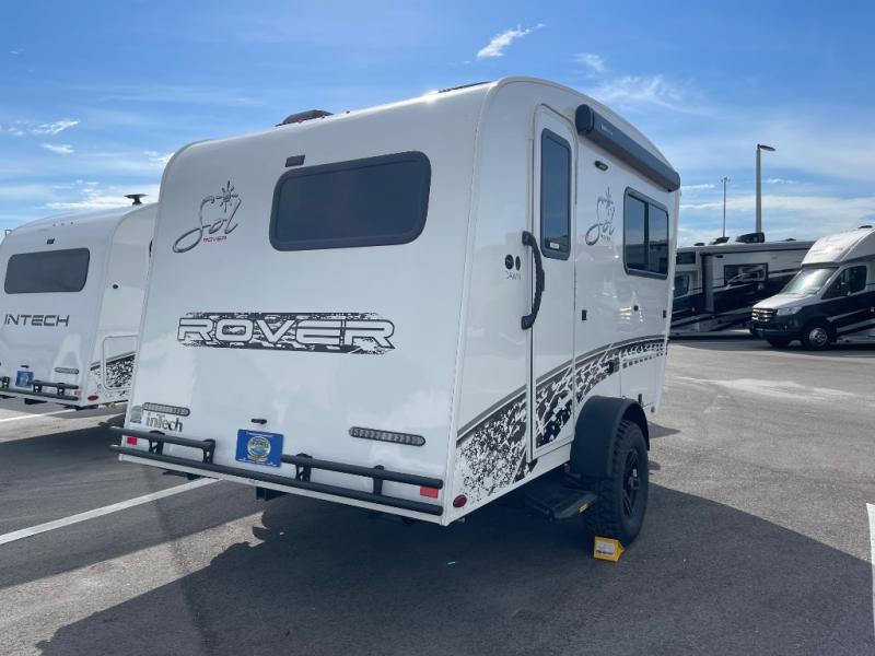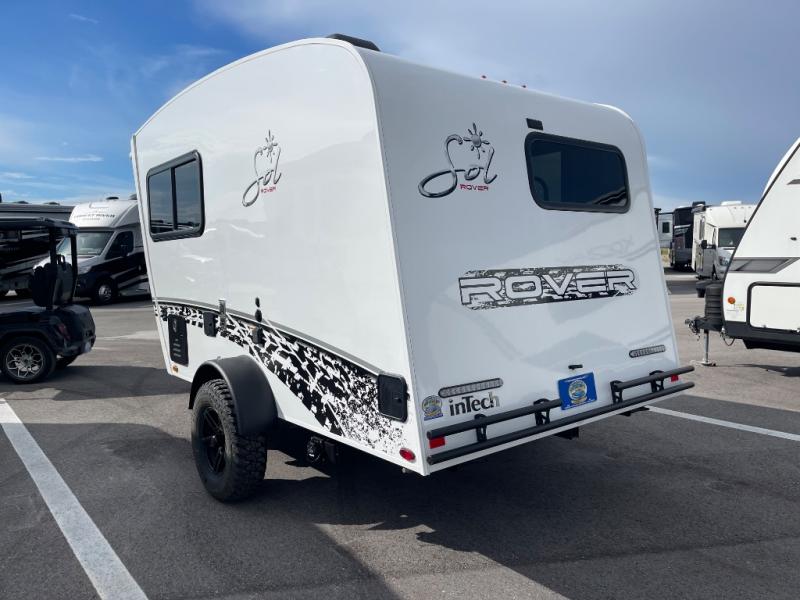 With any Sol travel trailer by inTech RV you will find strong, durable construction consisting of lightweight aluminum that is easier to tow and resists rust, water, and dents. The Tilt-Forward Design creates more space inside so you can stretch out, and the panoramic windshield gives a great view of the mountains, ocean, or forest! The elegant interior features tinted windows with shades, Infinity woven flooring, and a stainless steel cooktop and microwave. You will stay comfortable year around since these models include a 15K BTU A/C and a 16K BTU furnace. The optional Rover Package can also be added that features rugged decals, off-road tires with a 3" lift, two different color choices to choose from, plus more!