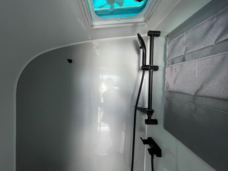 Make each adventure count with this Sol travel trailer. You and your loved one will have a convertible dinette to enjoy meals at and sleep on at night. In the morning, prepare eggs and bacon on the two burner stainless steel cooktop before heading out for the day. If you've chosen the optional 7' awning, you may not wander off too far from your trailer. This model also includes a wet bath with a porcelain toilet, a roof vent, plus a mesh shower storage net with two towel hooks for your convenience. This model also has a dry weight that ranges from 2,650-2,731 lbs., a tongue weight between 280-310 lbs., and a carrying capacity between 805-910 lbs.