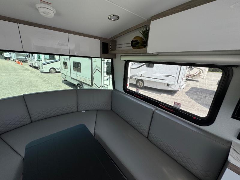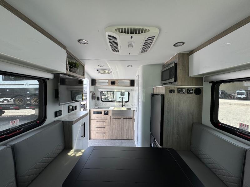 With any Sol travel trailer by inTech RV you will find strong, durable construction consisting of lightweight aluminum that is easier to tow and resists rust, water, and dents. The Tilt-Forward Design creates more space inside so you can stretch out, and the panoramic windshield gives a great view of the mountains, ocean, or forest! The elegant interior features tinted windows with shades, Infinity woven flooring, and a stainless steel cooktop and microwave. You will stay comfortable year around since these models include a 15K BTU A/C and a 16K BTU furnace. The optional Rover Package can also be added that features rugged decals, off-road tires with a 3" lift, two different color choices to choose from, plus more!