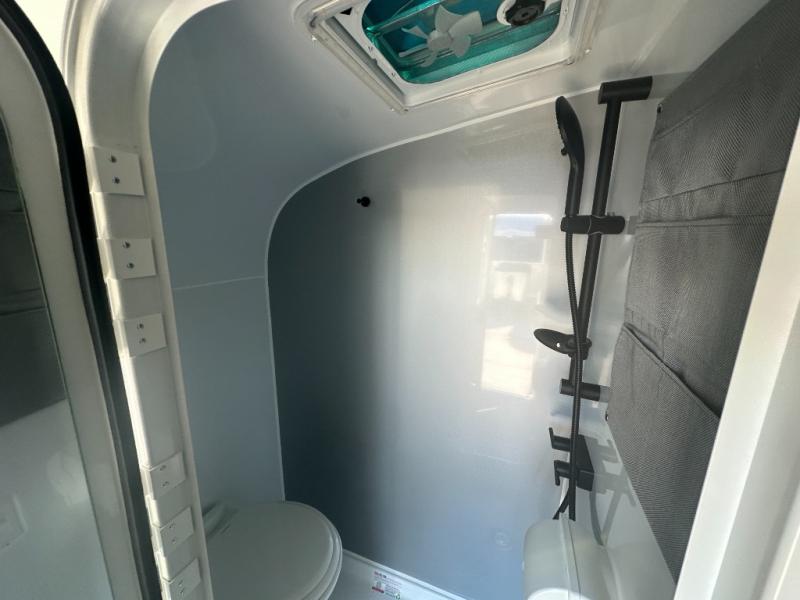 Make each adventure count with this Sol travel trailer. You and your loved one will have a convertible dinette to enjoy meals at and sleep on at night. In the morning, prepare eggs and bacon on the two burner stainless steel cooktop before heading out for the day. If you've chosen the optional 7' awning, you may not wander off too far from your trailer. This model also includes a wet bath with a porcelain toilet, a roof vent, plus a mesh shower storage net with two towel hooks for your convenience. This model also has a dry weight that ranges from 2,650-2,731 lbs., a tongue weight between 280-310 lbs., and a carrying capacity between 805-910 lbs.
