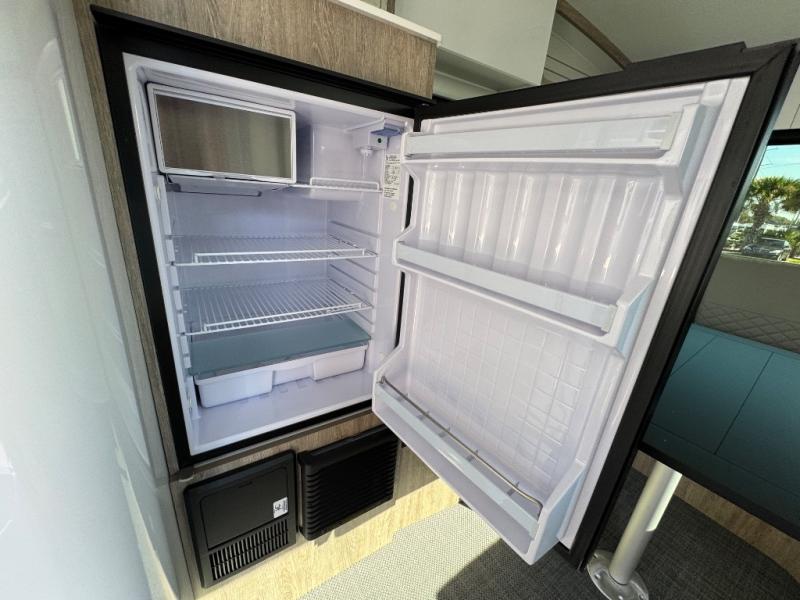 Make each adventure count with this Sol travel trailer. You and your loved one will have a convertible dinette to enjoy meals at and sleep on at night. In the morning, prepare eggs and bacon on the two burner stainless steel cooktop before heading out for the day. If you've chosen the optional 7' awning, you may not wander off too far from your trailer. This model also includes a wet bath with a porcelain toilet, a roof vent, plus a mesh shower storage net with two towel hooks for your convenience. This model also has a dry weight that ranges from 2,650-2,731 lbs., a tongue weight between 280-310 lbs., and a carrying capacity between 805-910 lbs.