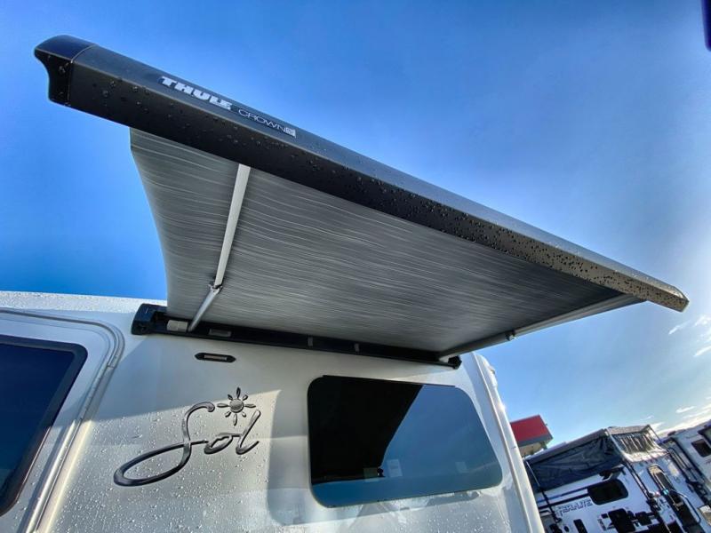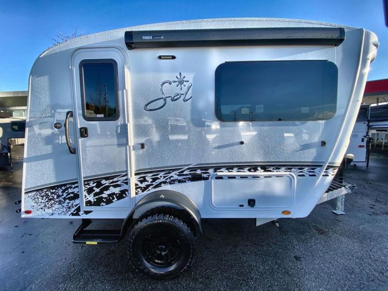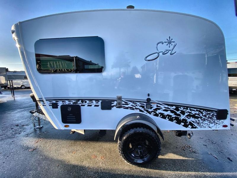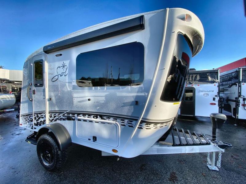 With any Sol travel trailer by inTech RV you will find strong, durable construction consisting of lightweight aluminum that is easier to tow and resists rust, water, and dents. The Tilt-Forward Design creates more space inside so you can stretch out, and the panoramic windshield gives a great view of the mountains, ocean, or forest! The elegant interior features tinted windows with shades, Infinity woven flooring, and a stainless steel cooktop and microwave. You will stay comfortable year around since these models include a 15K BTU A/C and a 16K BTU furnace. The optional Rover Package can also be added that features rugged decals, off-road tires with a 3" lift, two different color choices to choose from, plus more!