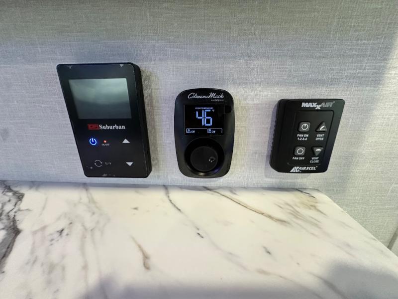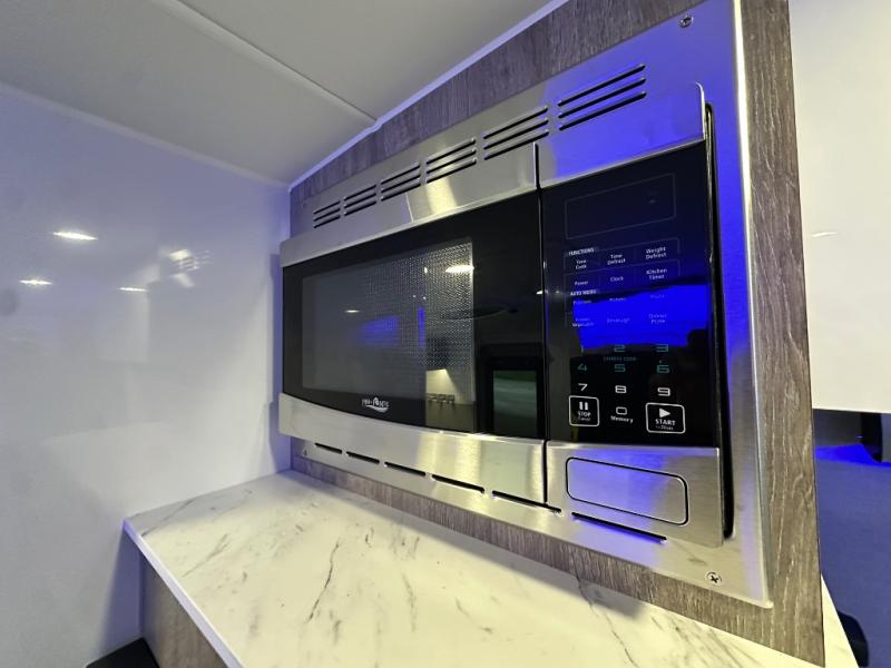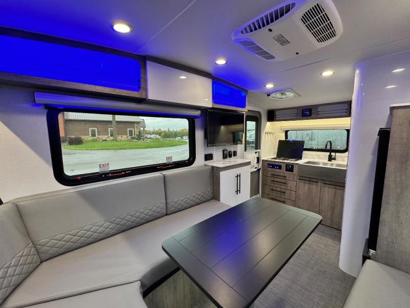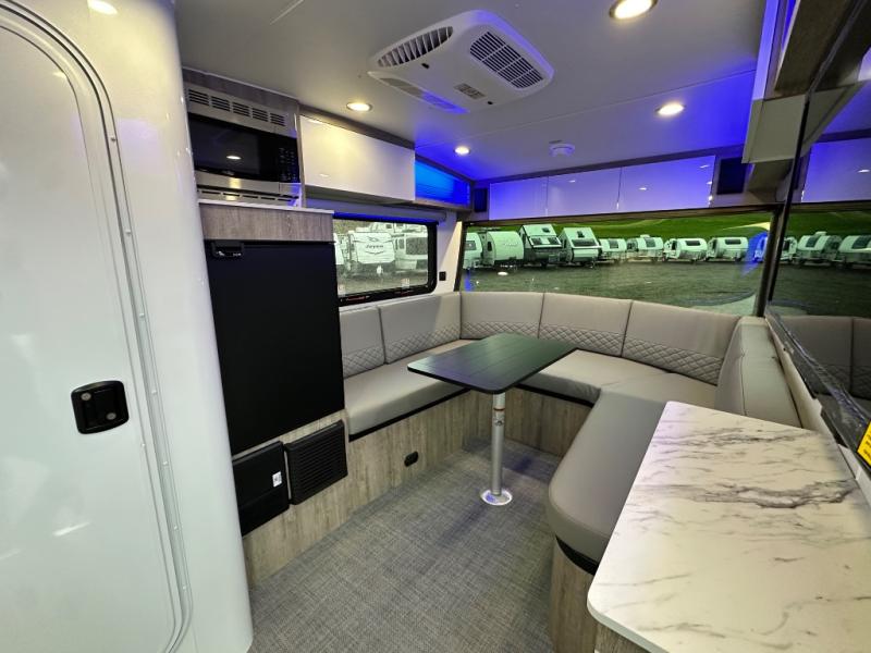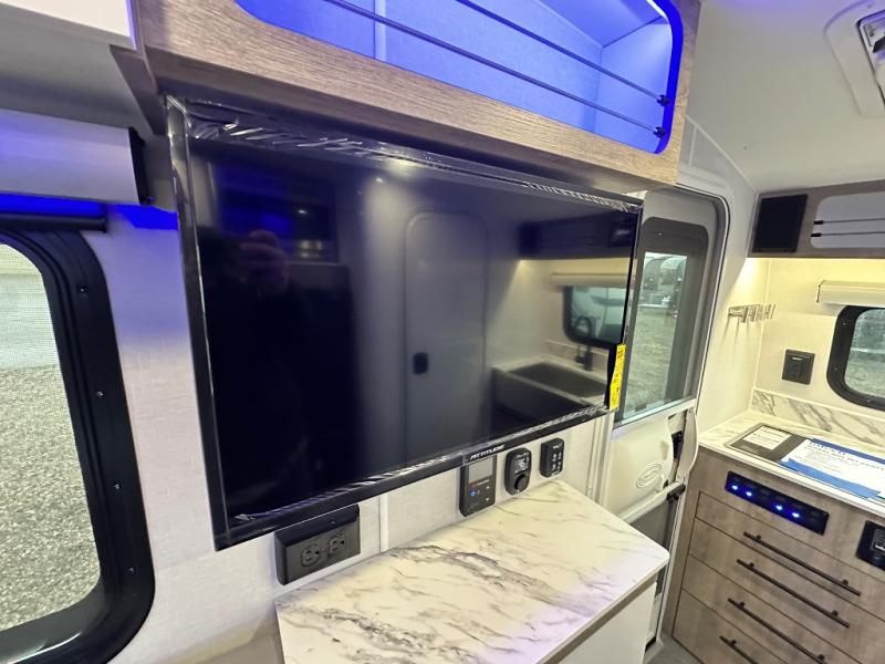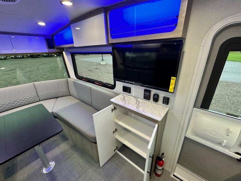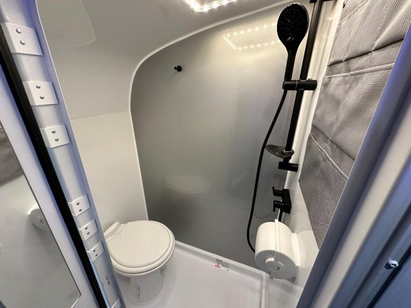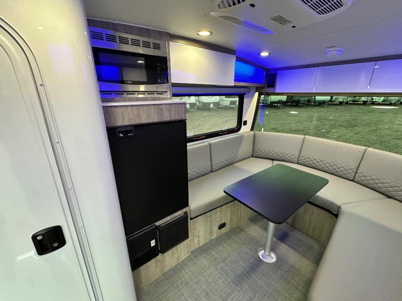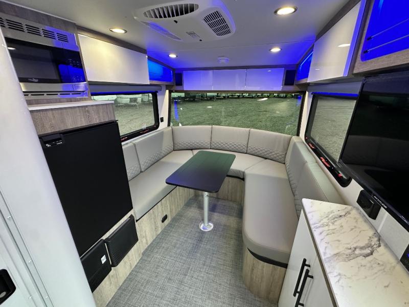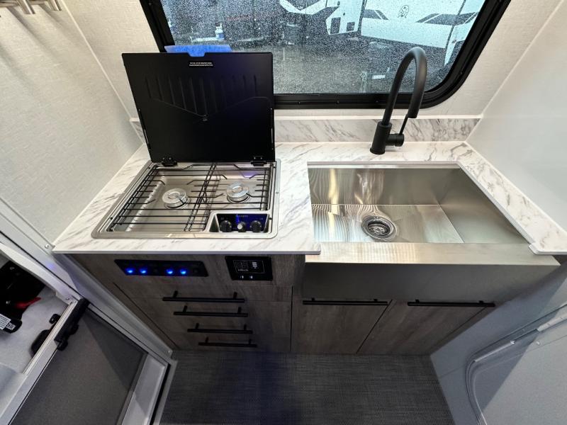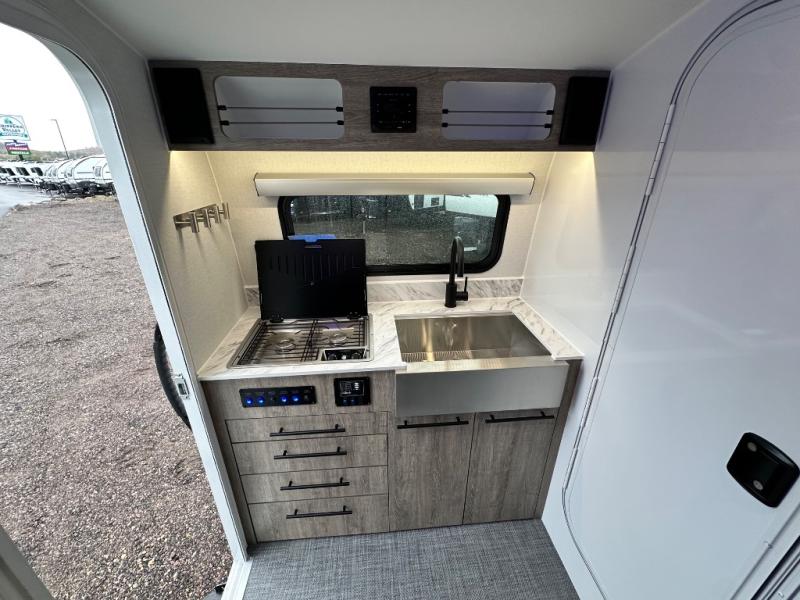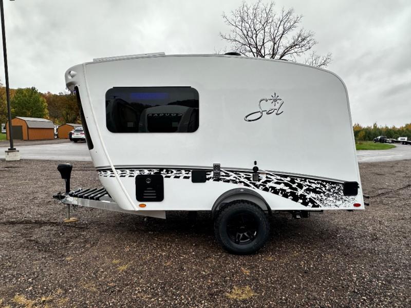 With any Sol travel trailer by inTech RV you will find strong, durable construction consisting of lightweight aluminum that is easier to tow and resists rust, water, and dents. The Tilt-Forward Design creates more space inside so you can stretch out, and the panoramic windshield gives a great view of the mountains, ocean, or forest! The elegant interior features tinted windows with shades, Infinity woven flooring, and a stainless steel cooktop and microwave. You will stay comfortable year around since these models include a 15K BTU A/C and a 16K BTU furnace.