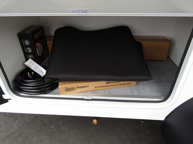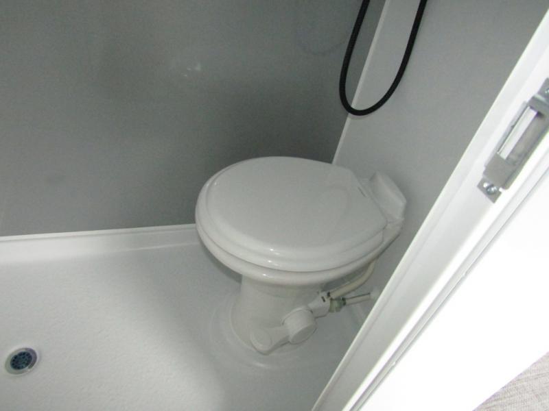 This travel trailer is ready to hit the great outdoors whenever you are! You and your loved one will have a front convertible U-shaped dinette to enjoy meals at and sleep on at night. And the rear twin beds include a filler if you want to convert them into one king-size bed In the morning. You can also prepare eggs and bacon on the two burner cooktop before heading out for the day. If you've chosen the optional 10' awning, you may not wander off too far from your trailer. This model also includes a wet bath with a porcelain toilet and a roof vent to eliminate any unwanted steam. This model has a dry weight that ranges from 3,540-3,970 lbs., a tongue weight between 540-575 lbs., and a carrying capacity between 820-1210 lbs.
