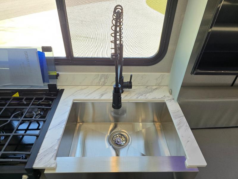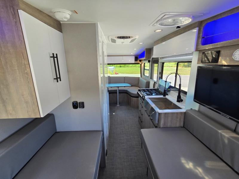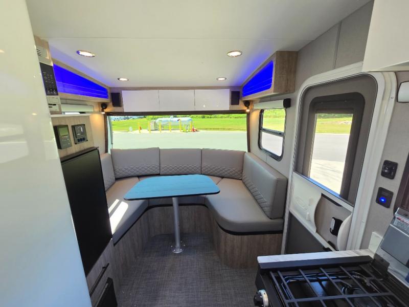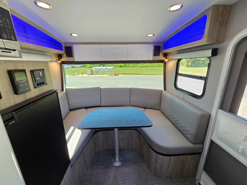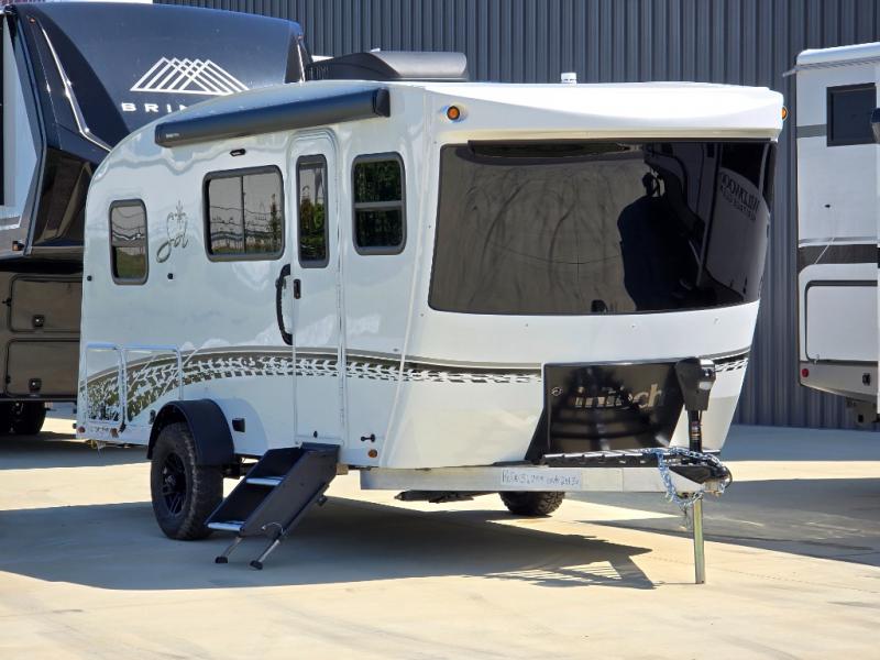 With any Sol travel trailer by inTech RV you will find strong, durable construction consisting of lightweight aluminum that is easier to tow and resists rust, water, and dents. The Tilt-Forward Design creates more space inside so you can stretch out, and the panoramic windshield gives a great view of the mountains, ocean, or forest! The elegant interior features tinted windows with shades, Infinity woven flooring, and a stainless steel cooktop and microwave. You will stay comfortable year around since these models include a 15K BTU A/C and a 16K BTU furnace. The optional Rover Package can also be added that features rugged decals, off-road tires with a 3" lift, two different color choices to choose from, plus more!