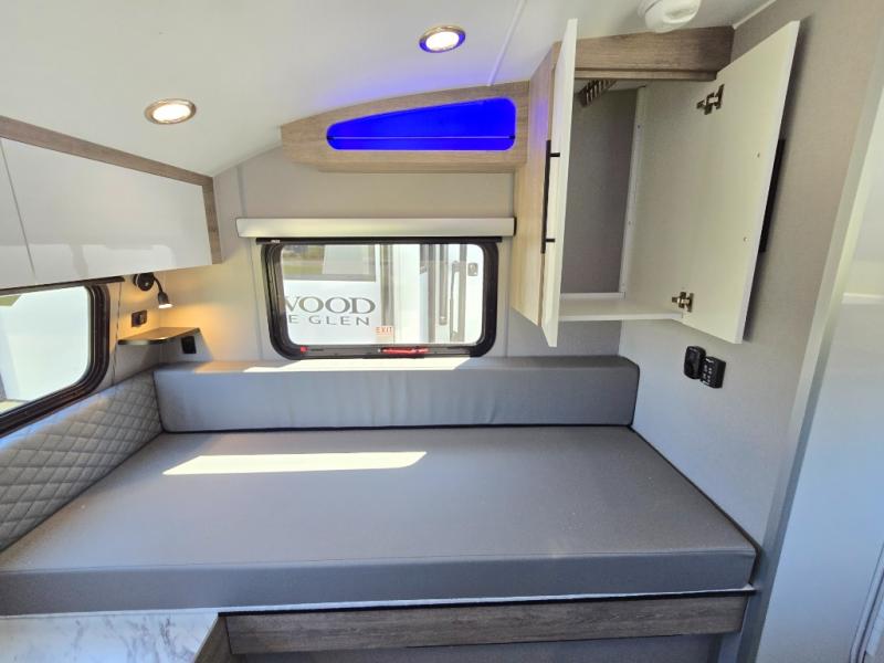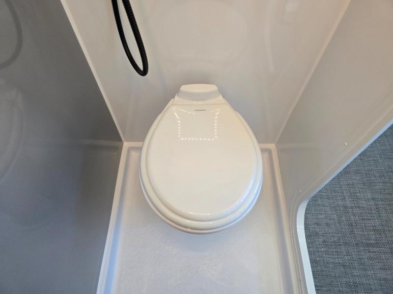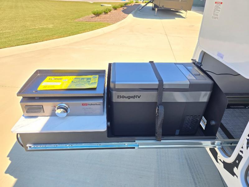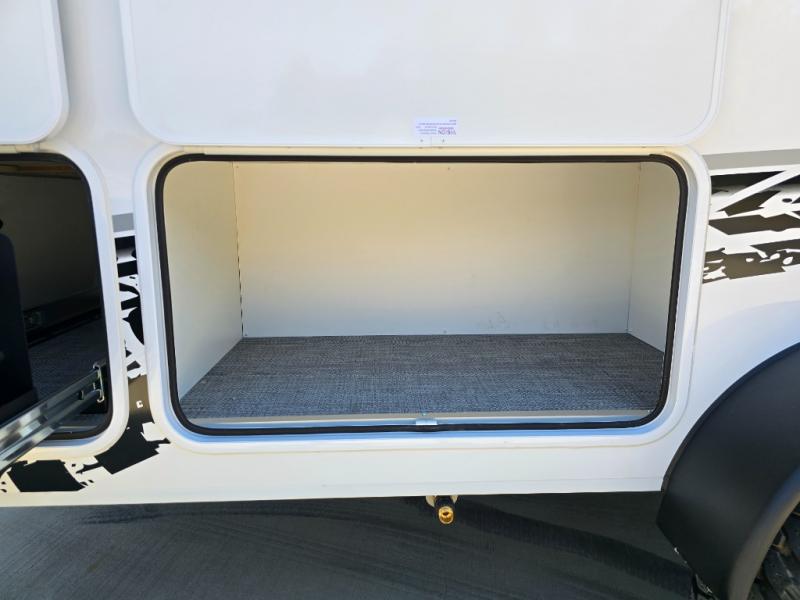 This travel trailer is ready to hit the great outdoors whenever you are! You and your loved one will have a front convertible U-shaped dinette to enjoy meals at and sleep on at night. And the rear twin beds include a filler if you want to convert them into one king-size bed In the morning. You can also prepare eggs and bacon on the two burner cooktop before heading out for the day. If you've chosen the optional 10' awning, you may not wander off too far from your trailer. This model also includes a wet bath with a porcelain toilet and a roof vent to eliminate any unwanted steam. This model has a dry weight that ranges from 3,540-3,970 lbs., a tongue weight between 540-575 lbs., and a carrying capacity between 820-1210 lbs.
