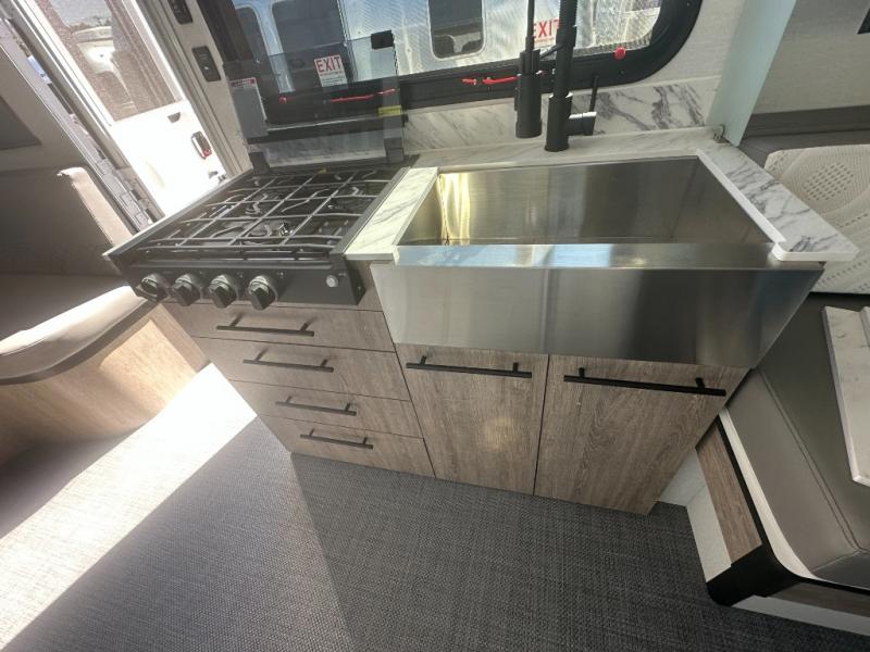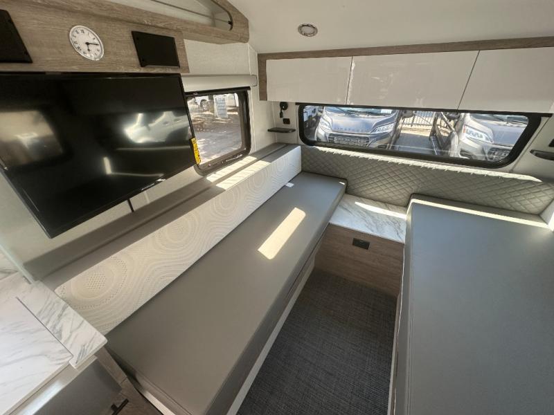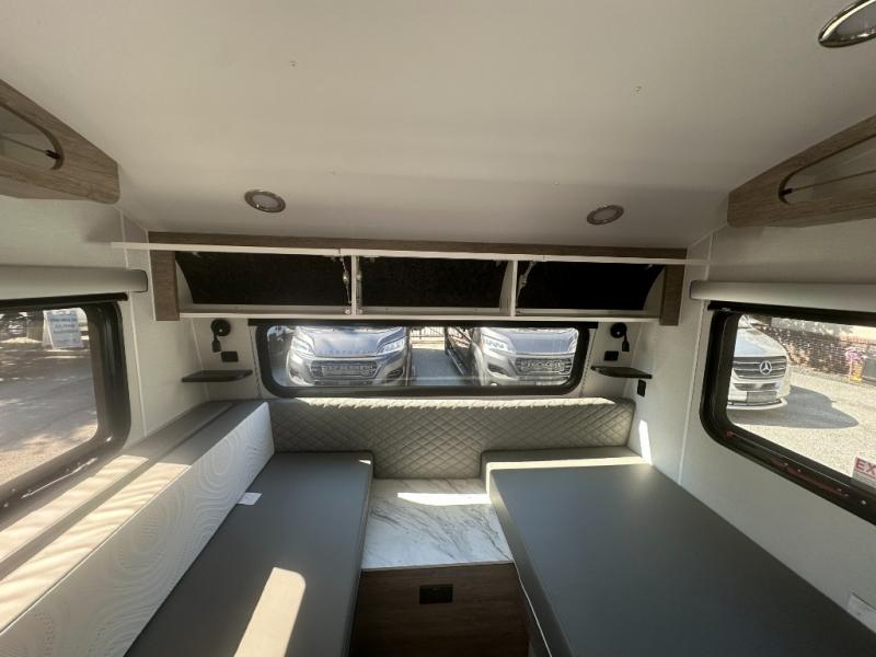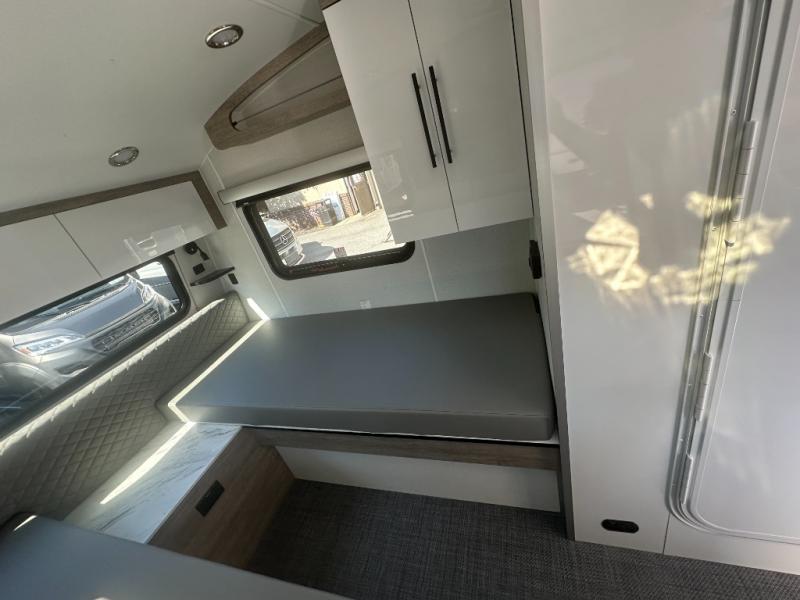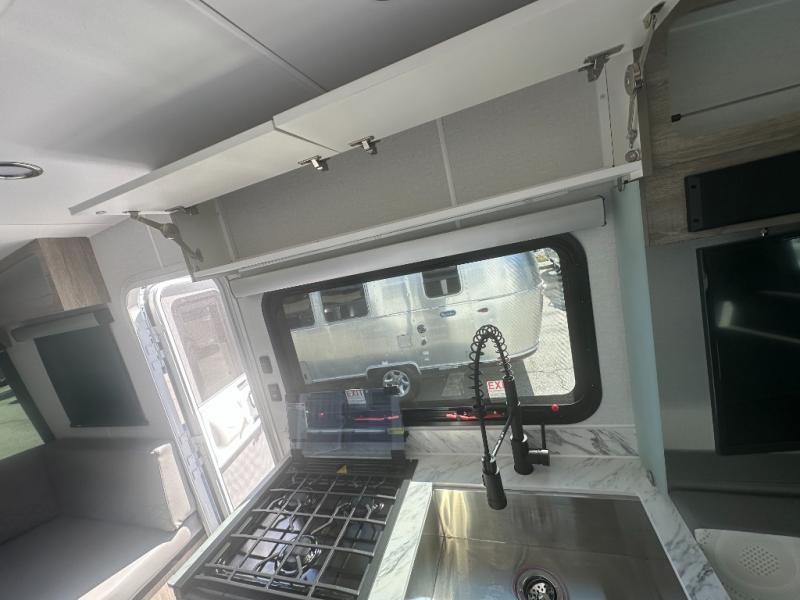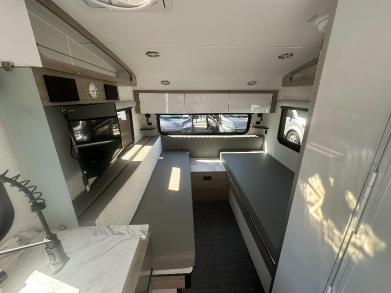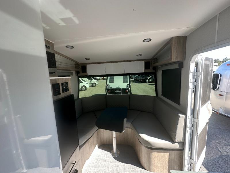 With any Sol travel trailer by inTech RV you will find strong, durable construction consisting of lightweight aluminum that is easier to tow and resists rust, water, and dents. The Tilt-Forward Design creates more space inside so you can stretch out, and the panoramic windshield gives a great view of the mountains, ocean, or forest! The elegant interior features tinted windows with shades, Infinity woven flooring, and a stainless steel cooktop and microwave. You will stay comfortable year around since these models include a 15K BTU A/C and a 16K BTU furnace.