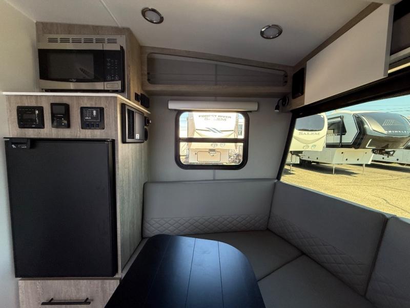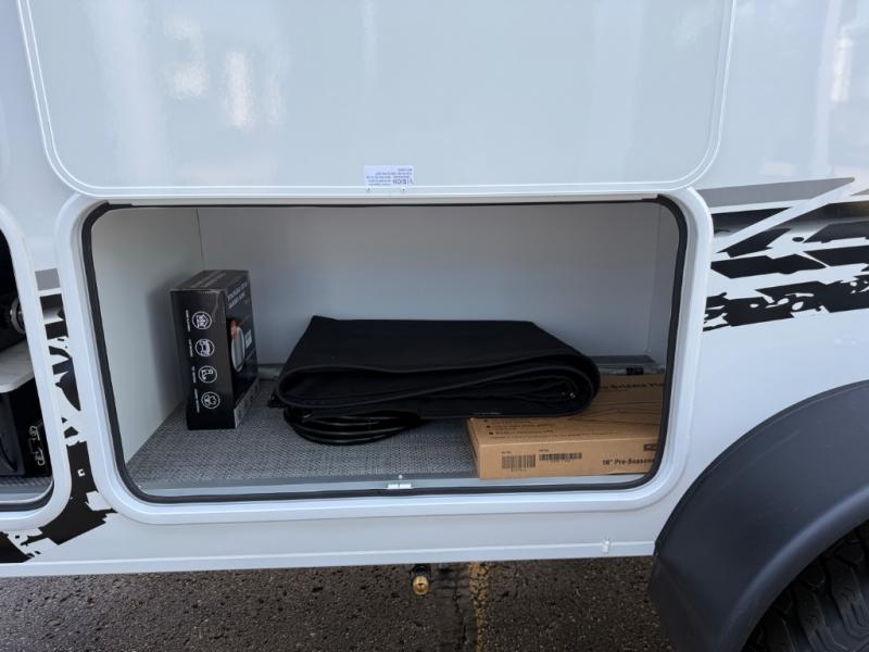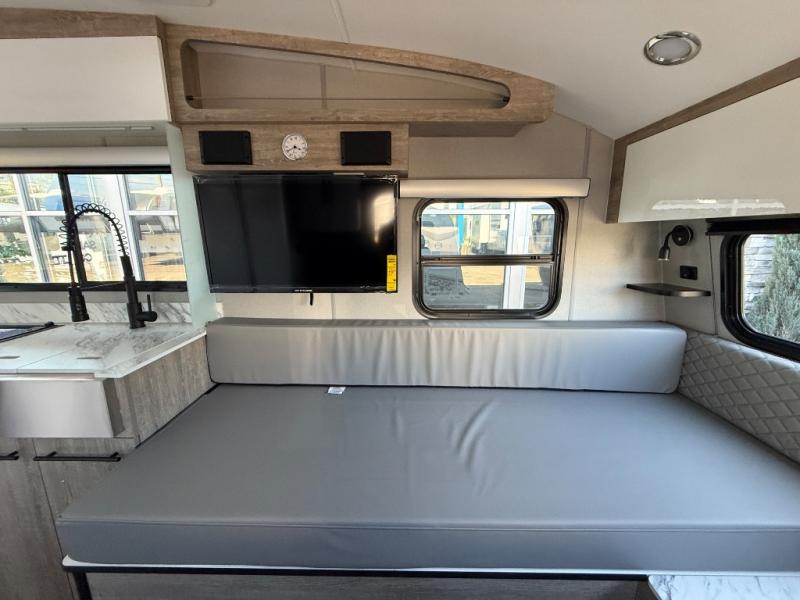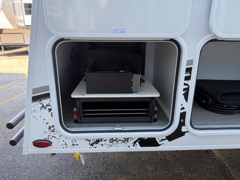 This travel trailer is ready to hit the great outdoors whenever you are! You and your loved one will have a front convertible U-shaped dinette to enjoy meals at and sleep on at night. And the rear twin beds include a filler if you want to convert them into one king-size bed In the morning. You can also prepare eggs and bacon on the two burner cooktop before heading out for the day. If you've chosen the optional 10' awning, you may not wander off too far from your trailer. This model also includes a wet bath with a porcelain toilet and a roof vent to eliminate any unwanted steam. This model has a dry weight that ranges from 3,590-3,980 lbs., a tongue weight between 540-575 lbs., and a carrying capacity between 820-1210 lbs. When the optional Rover Package is chosen on this model, you'll enjoy rugged decals, a 3" lift, blackout wheels, and more; see dealer for more details!