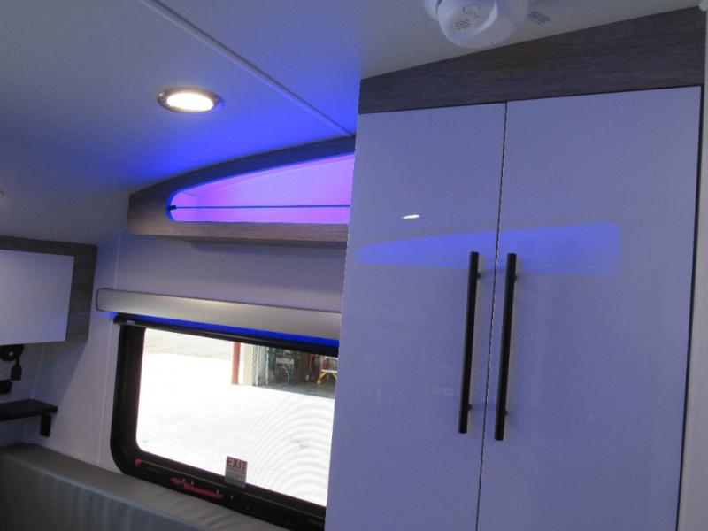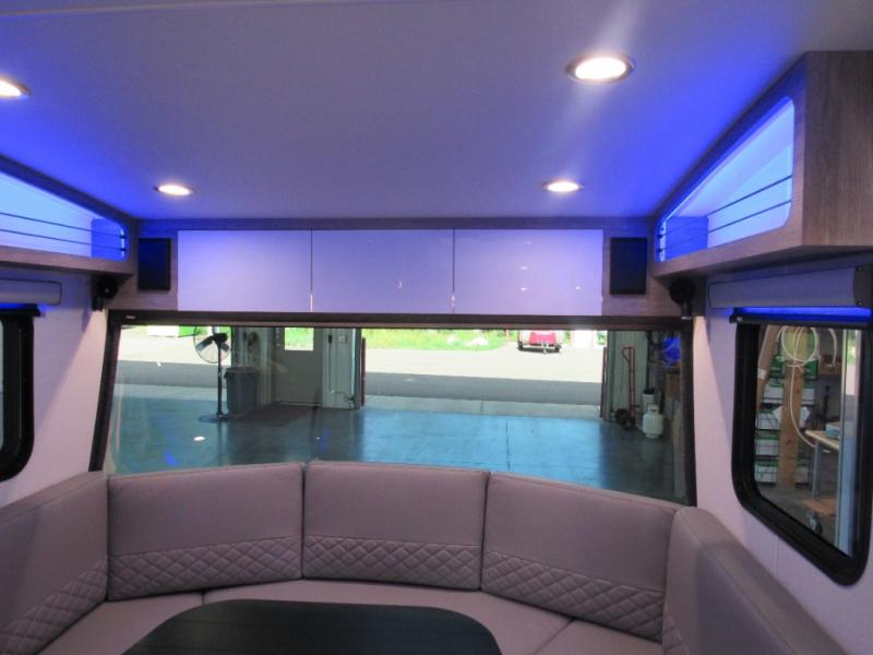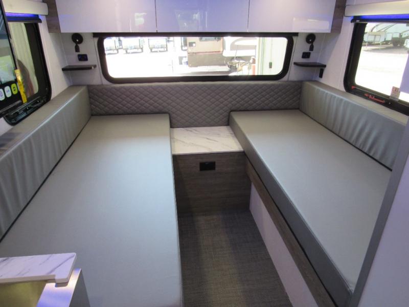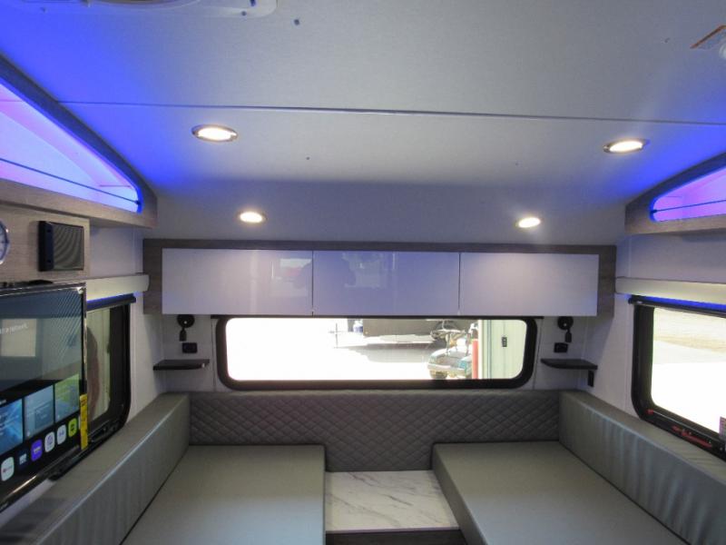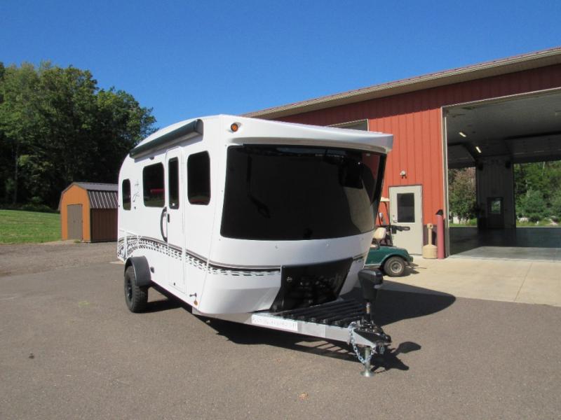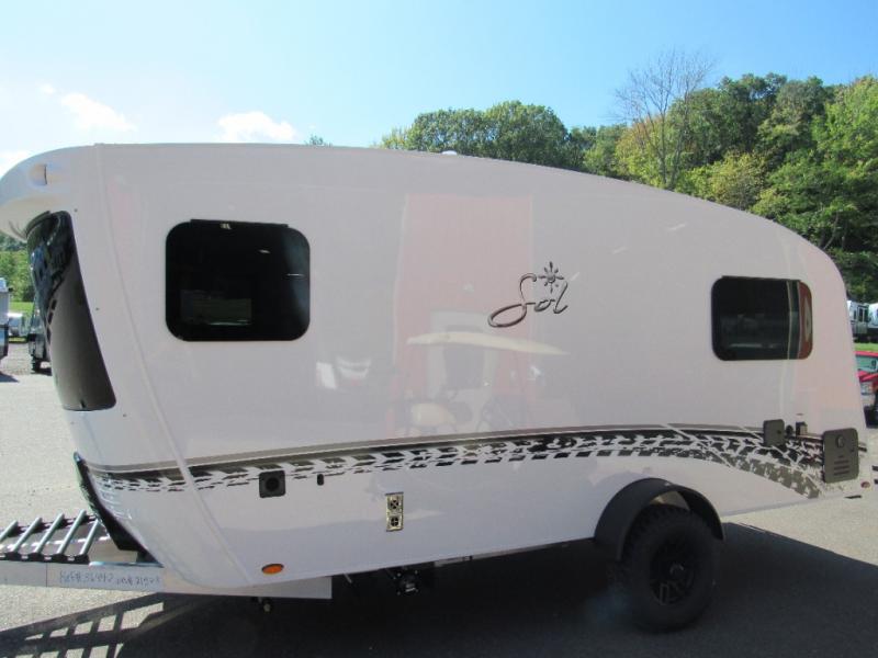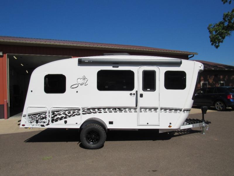 With any Sol travel trailer by inTech RV you will find strong, durable construction consisting of lightweight aluminum that is easier to tow and resists rust, water, and dents. The Tilt-Forward Design creates more space inside so you can stretch out, and the panoramic windshield gives a great view of the mountains, ocean, or forest! The elegant interior features tinted windows with shades, Infinity woven flooring, and a stainless steel cooktop and microwave. You will stay comfortable year around since these models include a 15K BTU A/C and a 16K BTU furnace.