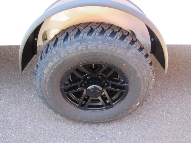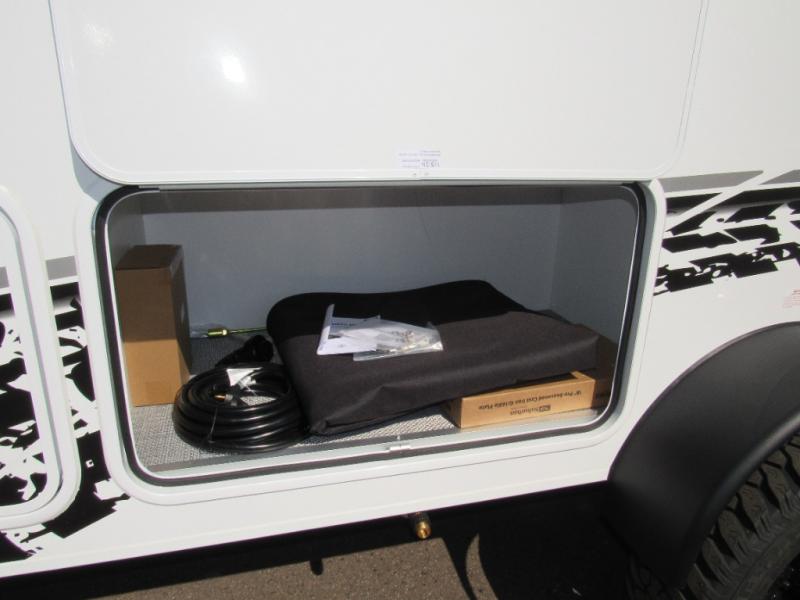 This travel trailer is ready to hit the great outdoors whenever you are! You and your loved one will have a front convertible U-shaped dinette to enjoy meals at and sleep on at night. And the rear twin beds include a filler if you want to convert them into one king-size bed In the morning. You can also prepare eggs and bacon on the two burner cooktop before heading out for the day. If you've chosen the optional 10' awning, you may not wander off too far from your trailer. This model also includes a wet bath with a porcelain toilet and a roof vent to eliminate any unwanted steam. This model has a dry weight that ranges from 3,590-3,980 lbs., a tongue weight between 540-575 lbs., and a carrying capacity between 820-1210 lbs. When the optional Rover Package is chosen on this model, you'll enjoy rugged decals, a 3" lift, blackout wheels, and more; see dealer for more details!