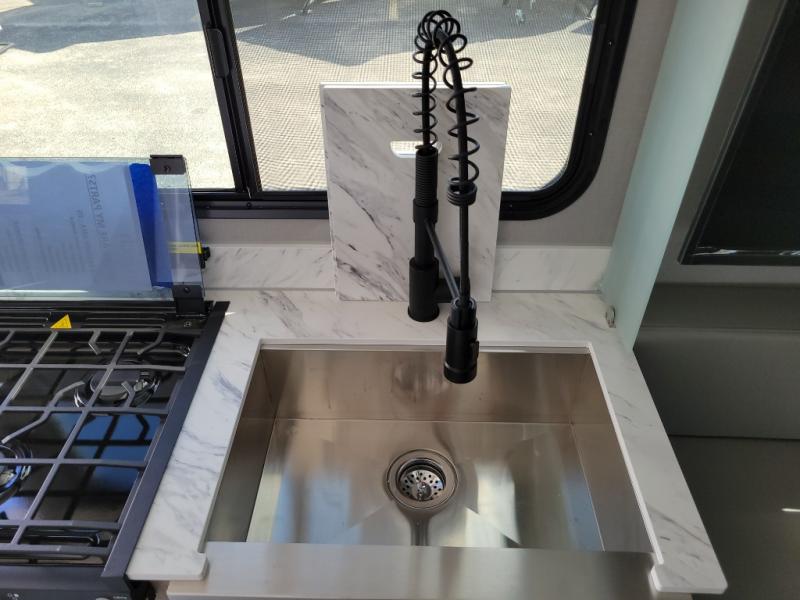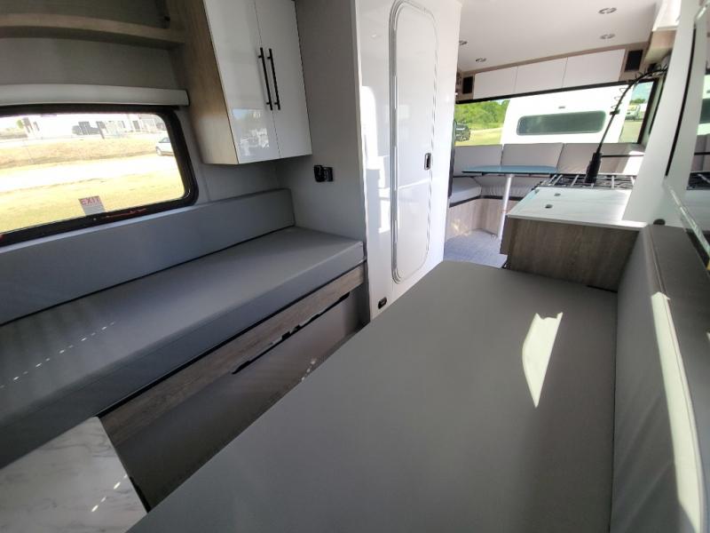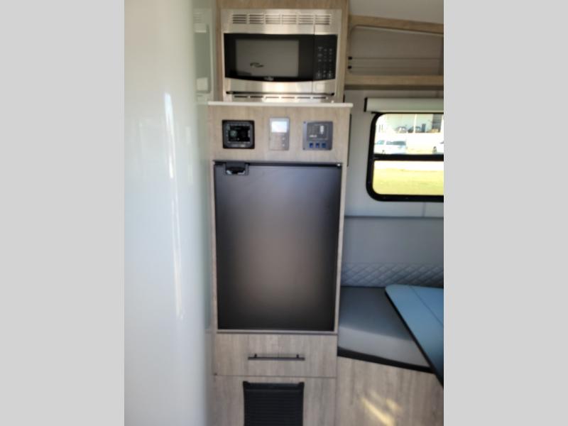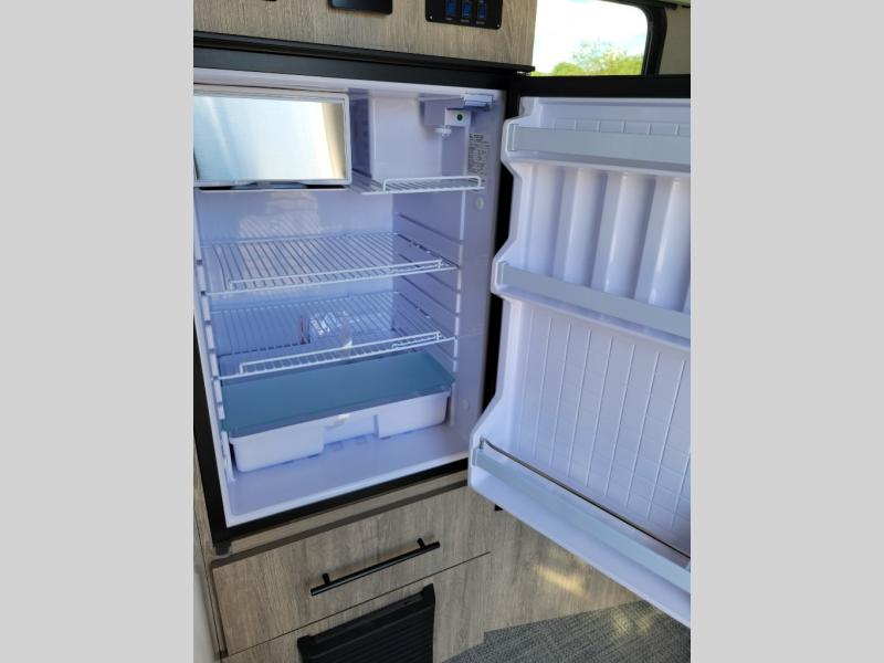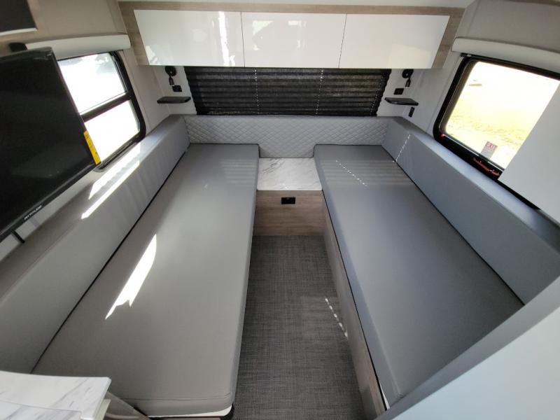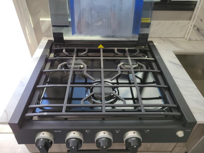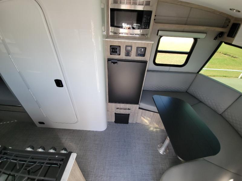 With any Sol travel trailer by inTech RV you will find strong, durable construction consisting of lightweight aluminum that is easier to tow and resists rust, water, and dents. The Tilt-Forward Design creates more space inside so you can stretch out, and the panoramic windshield gives a great view of the mountains, ocean, or forest! The elegant interior features tinted windows with shades, Infinity woven flooring, and a stainless steel cooktop and microwave. You will stay comfortable year around since these models include a 15K BTU A/C and a 16K BTU furnace.