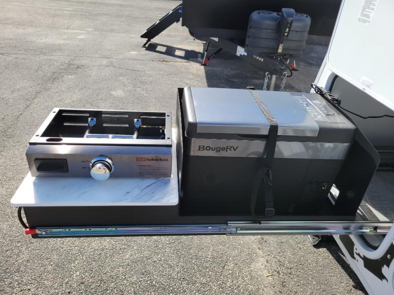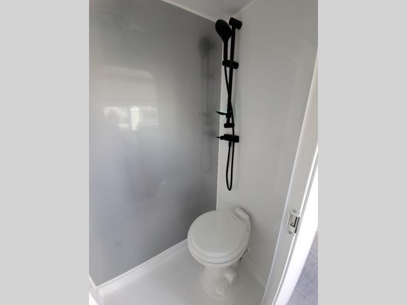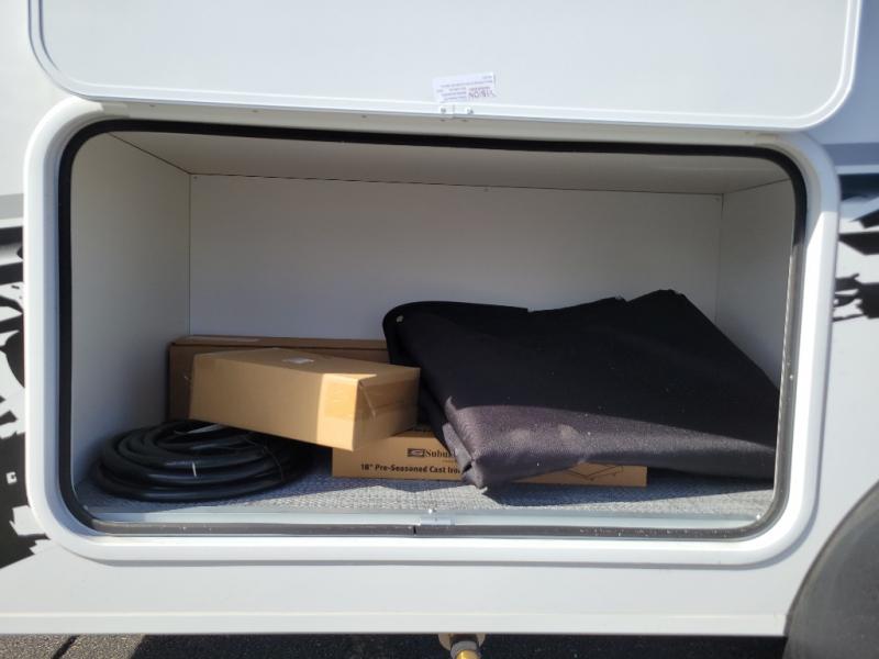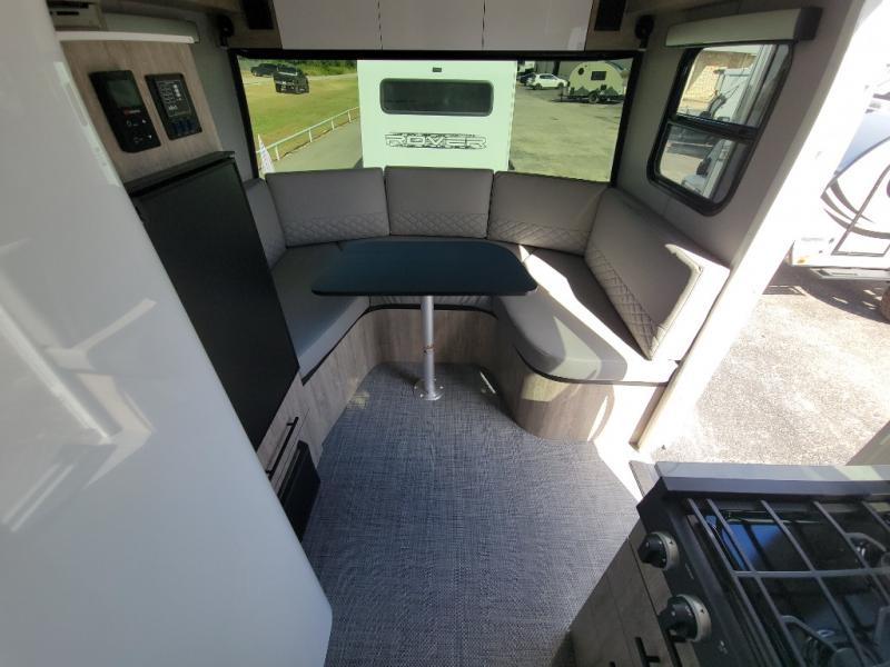 This travel trailer is ready to hit the great outdoors whenever you are! You and your loved one will have a front convertible U-shaped dinette to enjoy meals at and sleep on at night. And the rear twin beds include a filler if you want to convert them into one king-size bed In the morning. You can also prepare eggs and bacon on the two burner cooktop before heading out for the day. If you've chosen the optional 10' awning, you may not wander off too far from your trailer. This model also includes a wet bath with a porcelain toilet and a roof vent to eliminate any unwanted steam. This model has a dry weight that ranges from 3,590-3,980 lbs., a tongue weight between 540-575 lbs., and a carrying capacity between 820-1210 lbs. When the optional Rover Package is chosen on this model, you'll enjoy rugged decals, a 3" lift, blackout wheels, and more; see dealer for more details!