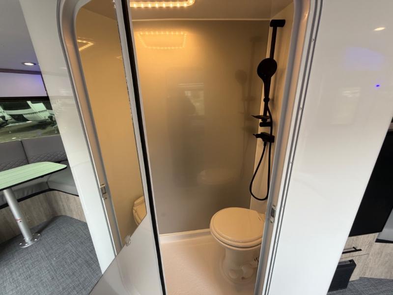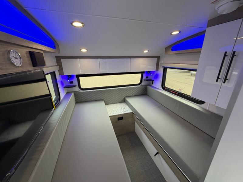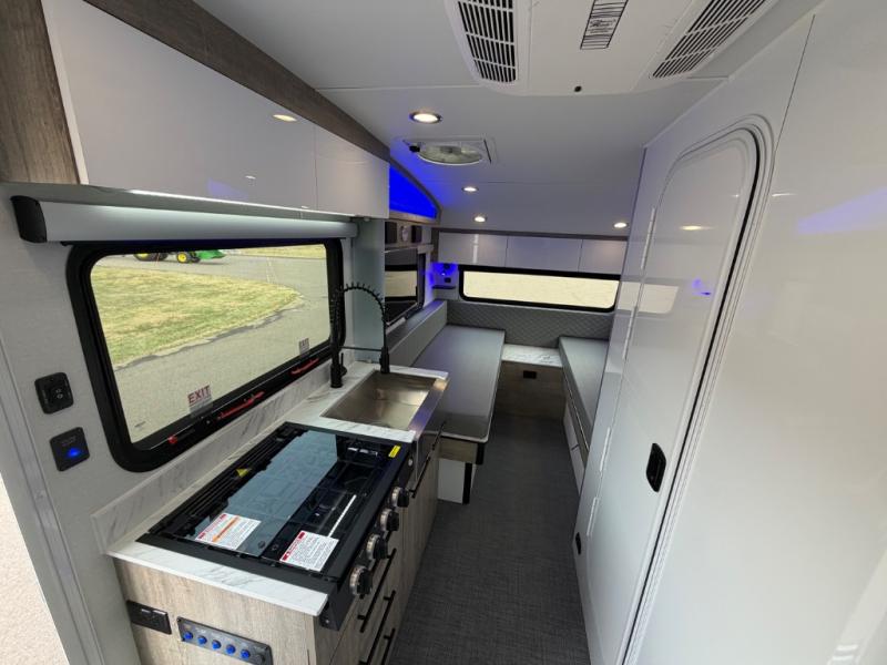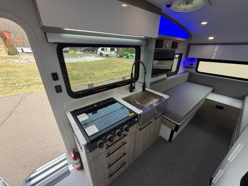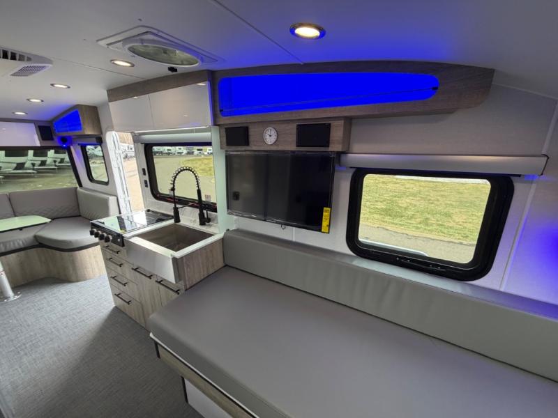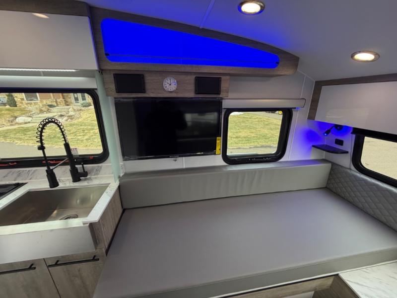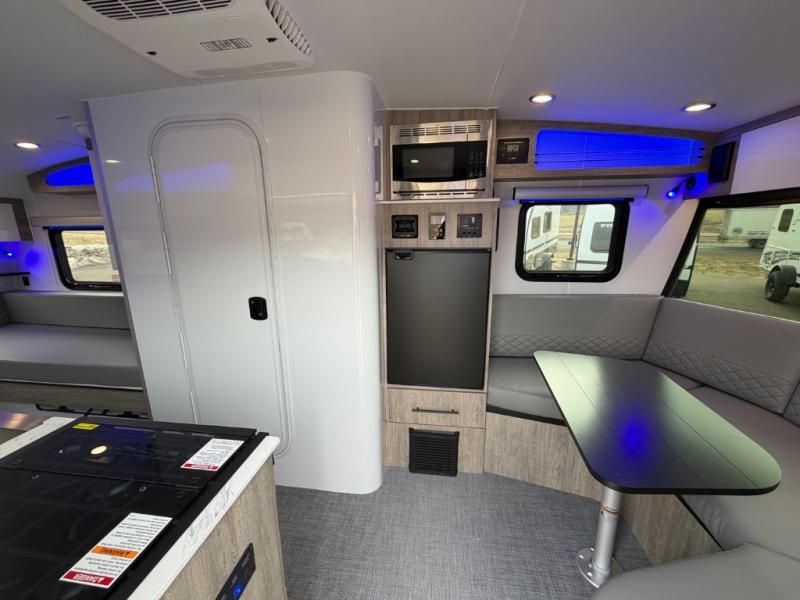 With any Sol travel trailer by inTech RV you will find strong, durable construction consisting of lightweight aluminum that is easier to tow and resists rust, water, and dents. The Tilt-Forward Design creates more space inside so you can stretch out, and the panoramic windshield gives a great view of the mountains, ocean, or forest! The elegant interior features tinted windows with shades, Infinity woven flooring, and a stainless steel cooktop and microwave. You will stay comfortable year around since these models include a 15K BTU A/C and a 16K BTU furnace.