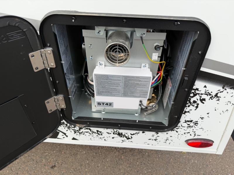 This travel trailer is ready to hit the great outdoors whenever you are! You and your loved one will have a front convertible U-shaped dinette to enjoy meals at and sleep on at night. And the rear twin beds include a filler if you want to convert them into one king-size bed In the morning. You can also prepare eggs and bacon on the two burner cooktop before heading out for the day. If you've chosen the optional 10' awning, you may not wander off too far from your trailer. This model also includes a wet bath with a porcelain toilet and a roof vent to eliminate any unwanted steam. This model has a dry weight that ranges from 3,590-3,980 lbs., a tongue weight between 540-575 lbs., and a carrying capacity between 820-1210 lbs. When the optional Rover Package is chosen on this model, you'll enjoy rugged decals, a 3" lift, blackout wheels, and more; see dealer for more details!