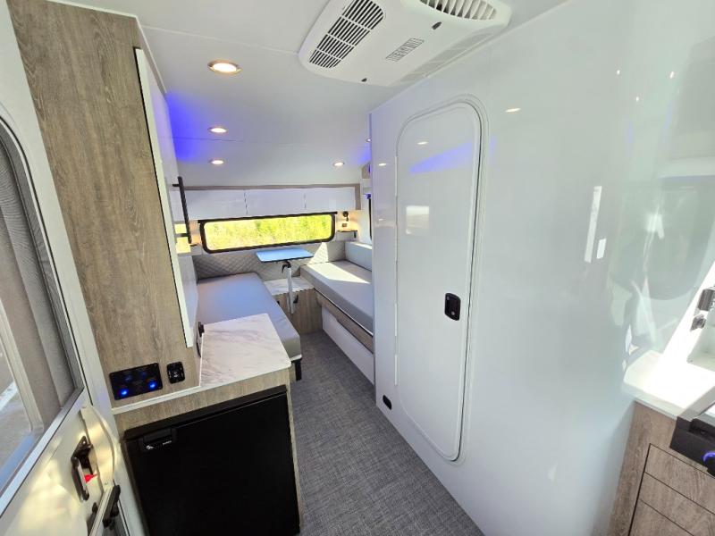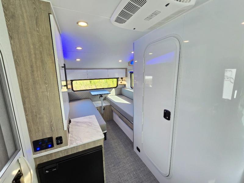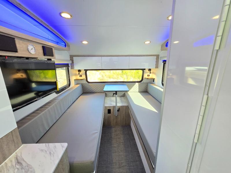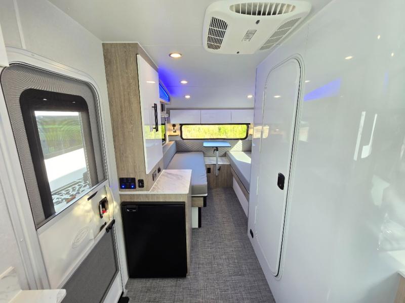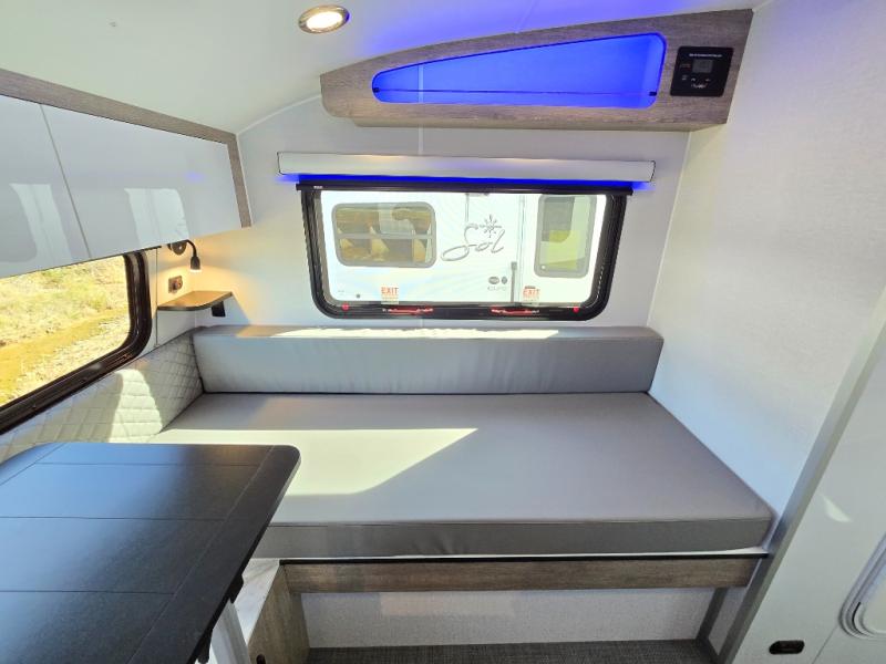 With any Sol travel trailer by inTech RV you will find strong, durable construction consisting of lightweight aluminum that is easier to tow and resists rust, water, and dents. The Tilt-Forward Design creates more space inside so you can stretch out, and the panoramic windshield gives a great view of the mountains, ocean, or forest! The elegant interior features tinted windows with shades, Infinity woven flooring, and a stainless steel cooktop and microwave. You will stay comfortable year around since these models include a 15K BTU A/C and a 16K BTU furnace. The optional Rover Package can also be added that features rugged decals, off-road tires with a 3" lift, two different color choices to choose from, plus more!