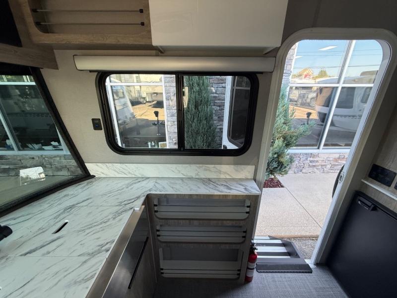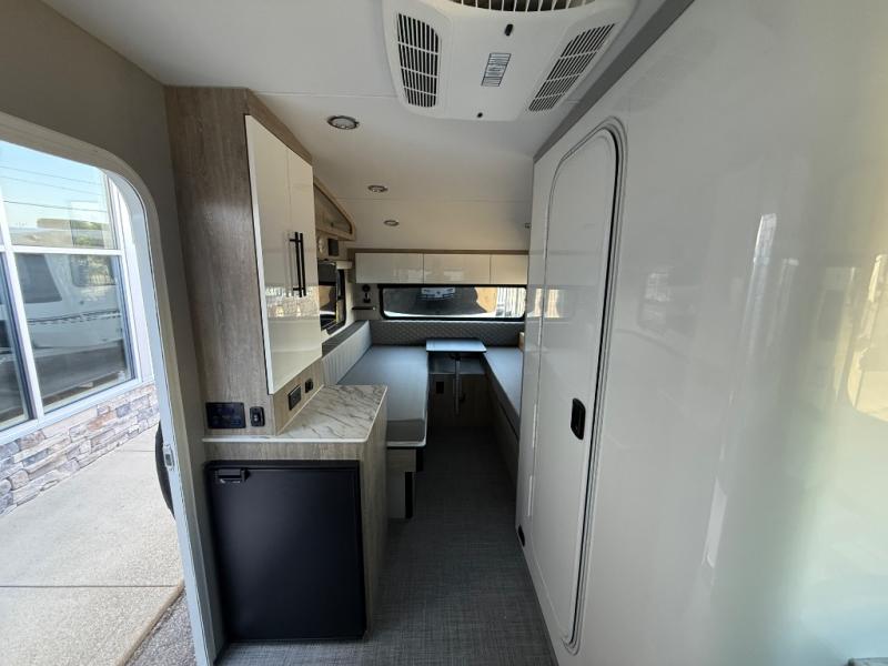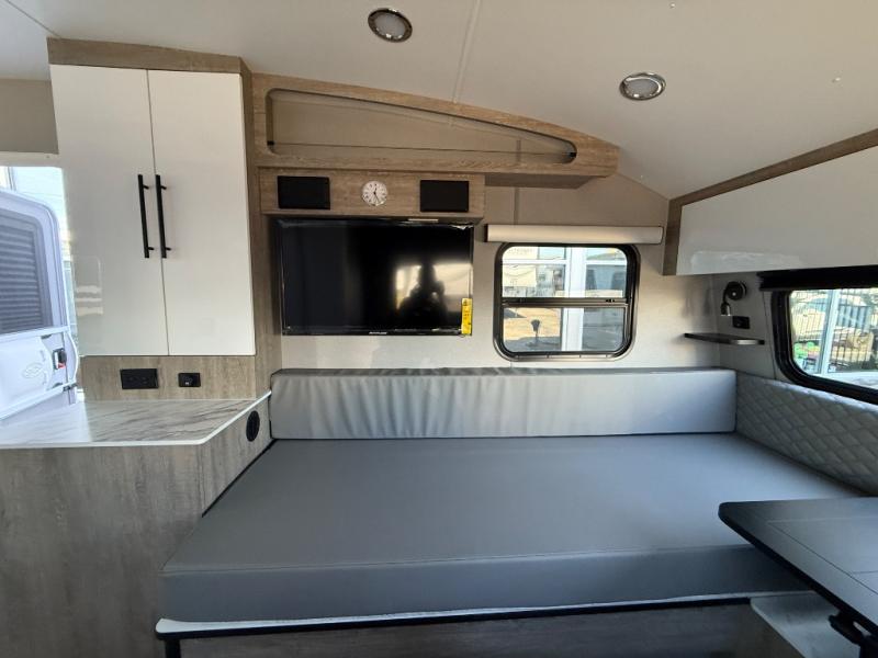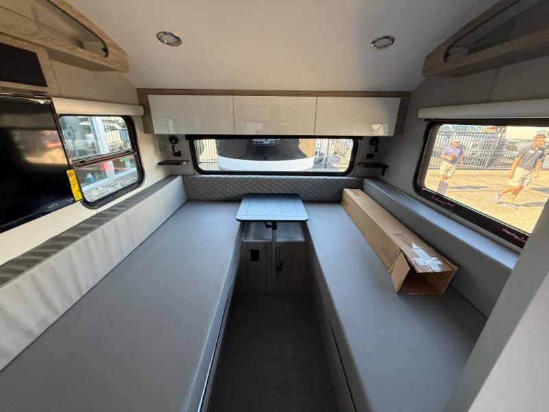 With any Sol travel trailer by inTech RV you will find strong, durable construction consisting of lightweight aluminum that is easier to tow and resists rust, water, and dents. The Tilt-Forward Design creates more space inside so you can stretch out, and the panoramic windshield gives a great view of the mountains, ocean, or forest! The elegant interior features tinted windows with shades, Infinity woven flooring, and a stainless steel cooktop and microwave. You will stay comfortable year around since these models include a 15K BTU A/C and a 16K BTU furnace.