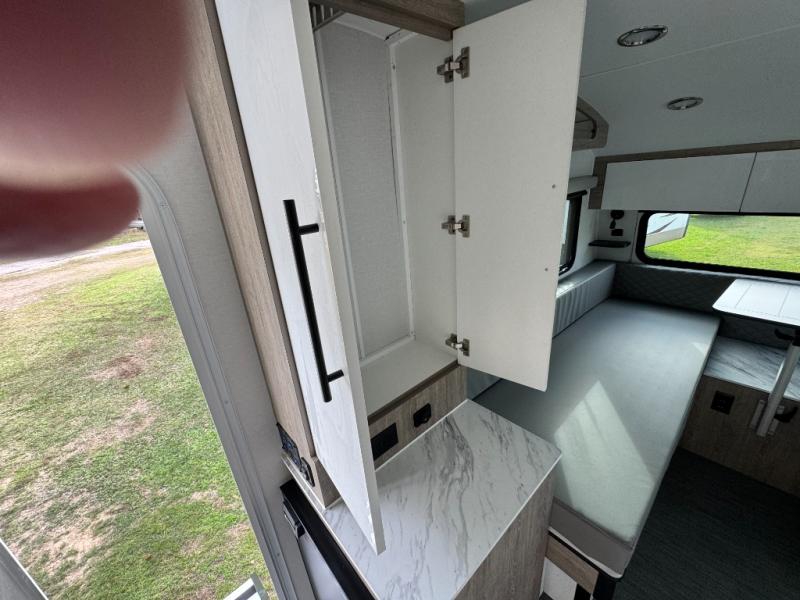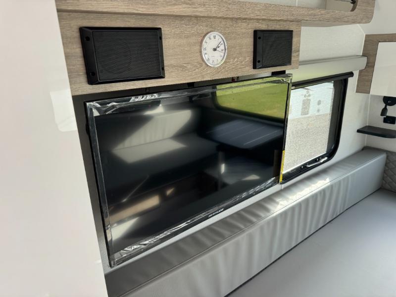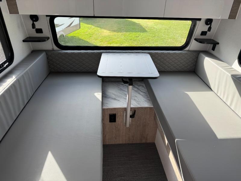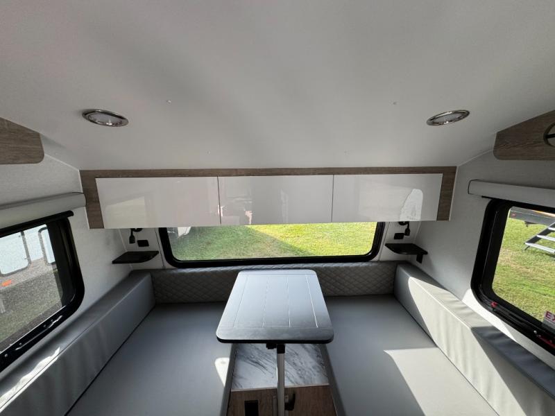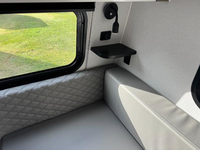 With any Sol travel trailer by inTech RV you will find strong, durable construction consisting of lightweight aluminum that is easier to tow and resists rust, water, and dents. The Tilt-Forward Design creates more space inside so you can stretch out, and the panoramic windshield gives a great view of the mountains, ocean, or forest! The elegant interior features tinted windows with shades, Infinity woven flooring, and a stainless steel cooktop and microwave. You will stay comfortable year around since these models include a 15K BTU A/C and a 16K BTU furnace.
