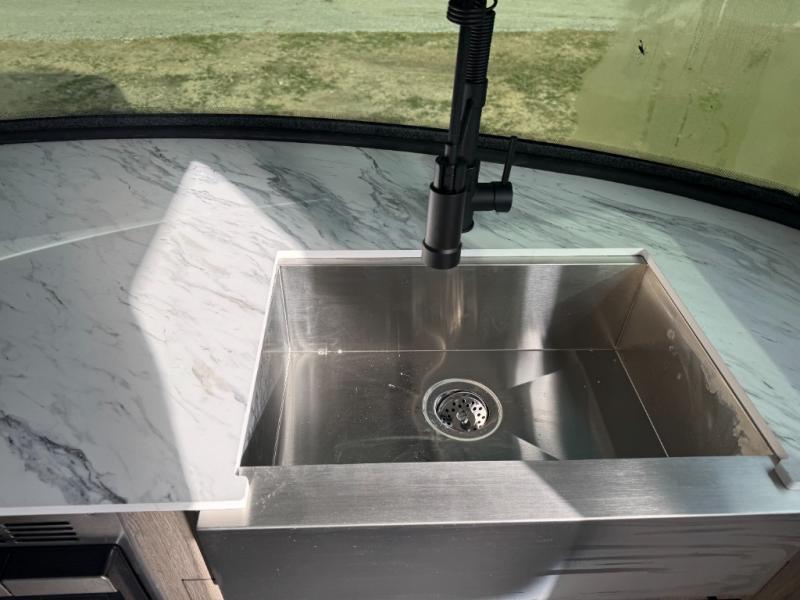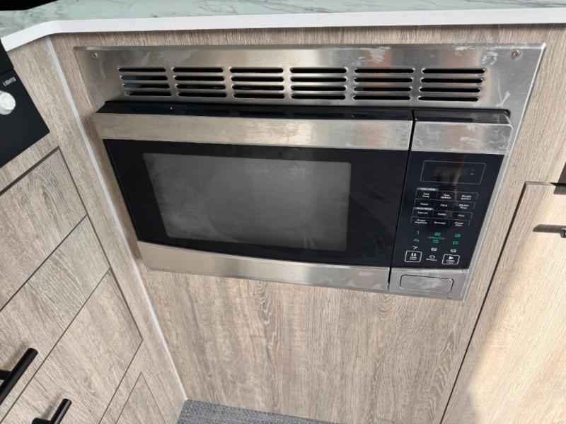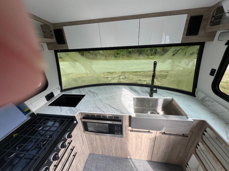 This Eclipse travel trailer will be the perfect companion on all your excursions. The large farmhouse style sink in the front kitchen provides plenty of space to clean up after dinner, and the stainless steel microwave will be perfect for popcorn and game night. The rear twin beds can be used to dine or sleep on, and you'll have a filler cushion if you want to convert them into a king-size bed! You won't have to worry about being bored on those rainy days since this model includes a 28" TV and a Bluetooth stereo with four speakers! This model has a dry weight that ranges from 3,240-3,660 lbs. lbs., a tongue weight between 490-550 lbs., and a carrying capacity between 1,140-1,560 lbs. When the optional Rover Package is chosen on this model, you'll enjoy rugged decals, a 3" lift, blackout wheels, and more; see dealer for more details!