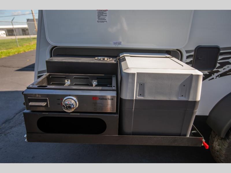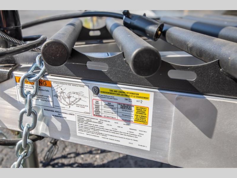 You will love the added space in this travel trailer that can sleep four people each night. There is a queen-size bed in the back, plus a convertible U-shaped dinette up front for the kids or your camping friends. The kitchen includes a two burner stainless steel cooktop, a stainless steel microwave, and a 4.5 12V compressor refrigerator for your perishables. You can also add the optional 10' power awning outside for shade as you visit with loved ones! This model has a dry weight that ranges from 3,230-3,372 lbs., a tongue weight between 465-495 lbs., and a carrying capacity between 525-610 lbs.